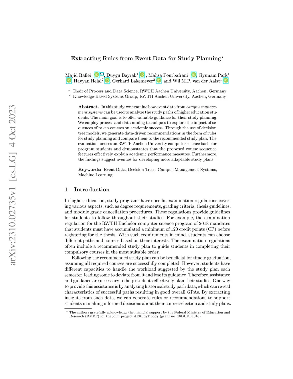 In this study, we examine how event data from campus management systems can be used to analyze the study paths of higher education students. The main goal is to offer valuable guidance for their study planning. We employ process and data mining techniques to explore the impact of sequences of taken courses on academic success. Through the use of decision tree models, we generate data-driven recommendations in the form of rules for study planning and compare them to the recommended study plan. The evaluation focuses on RWTH Aachen University computer science bachelor program students and demonstrates that the proposed course sequence features effectively explain academic performance measures. Furthermore, the findings suggest avenues for developing more adaptable study plans.