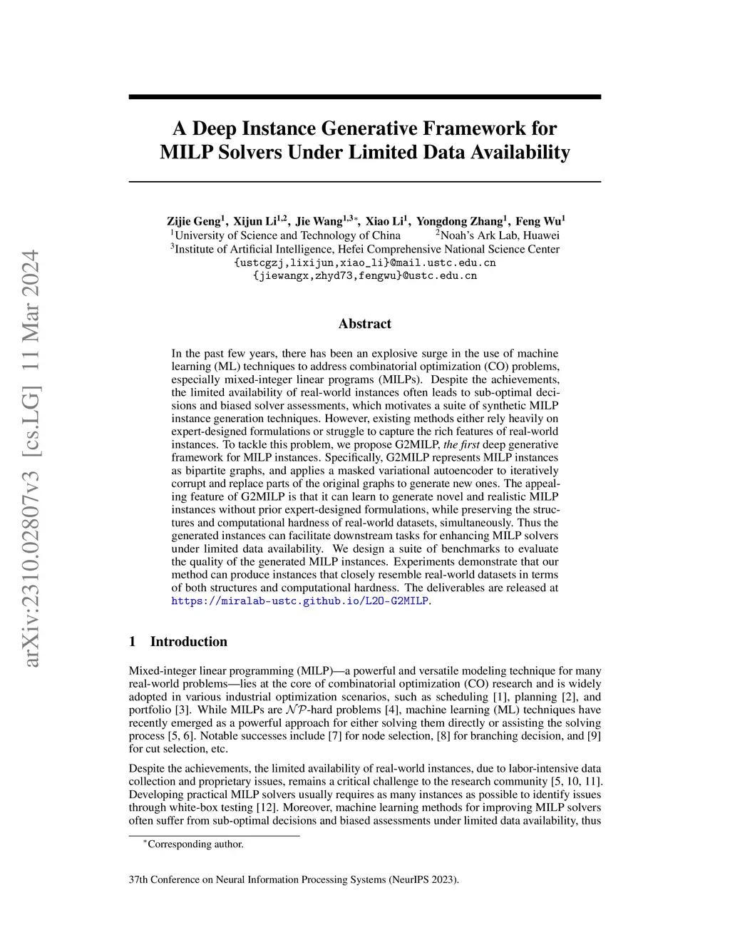 A Deep Instance Generative Framework for MILP Solvers Under Limited Data