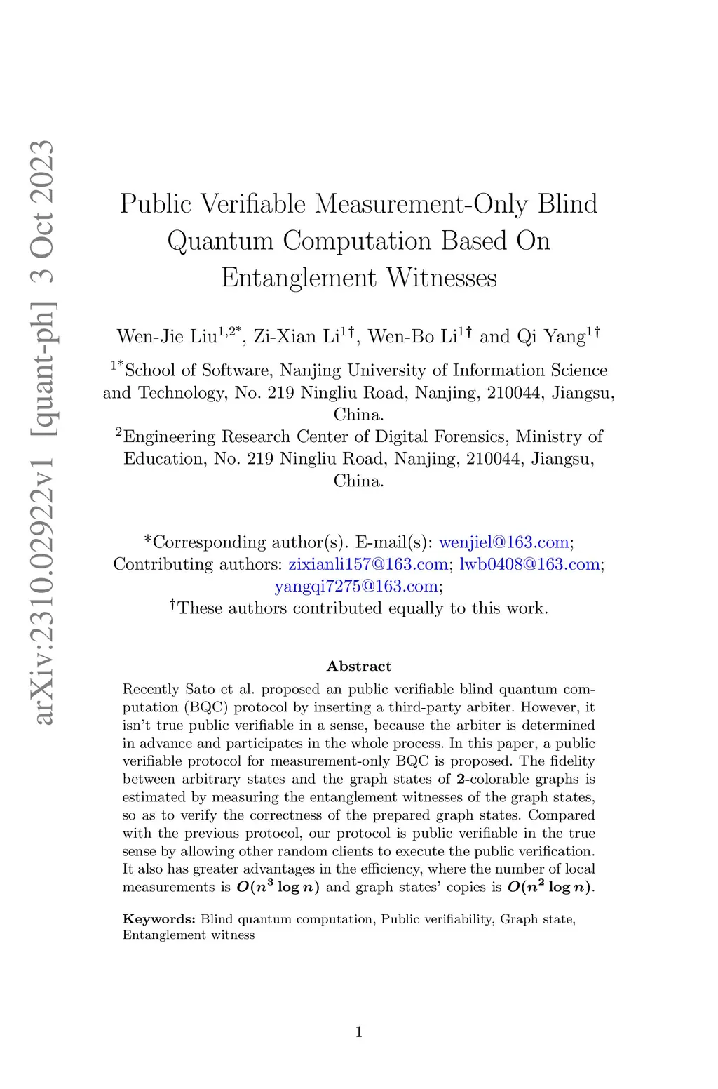 Recently, Sato et al. proposed an public verifiable blind quantum computation (BQC) protocol by inserting a third-party arbiter. However, it is not true public verifiable in a sense, because the arbiter is determined in advance and participates in the whole process. In this paper, a public verifiable protocol for measurement-only BQC is proposed. The fidelity between arbitrary states and the graph states of 2-colorable graphs is estimated by measuring the entanglement witnesses of the graph states,so as to verify the correctness of the prepared graph states. Compared with the previous protocol, our protocol is public verifiable in the true sense by allowing other random clients to execute the public verification. It also has greater advantages in the efficiency, where the number of local measurements is O(n^3*log {n}) and graph states' copies is O(n^2*log{n}).