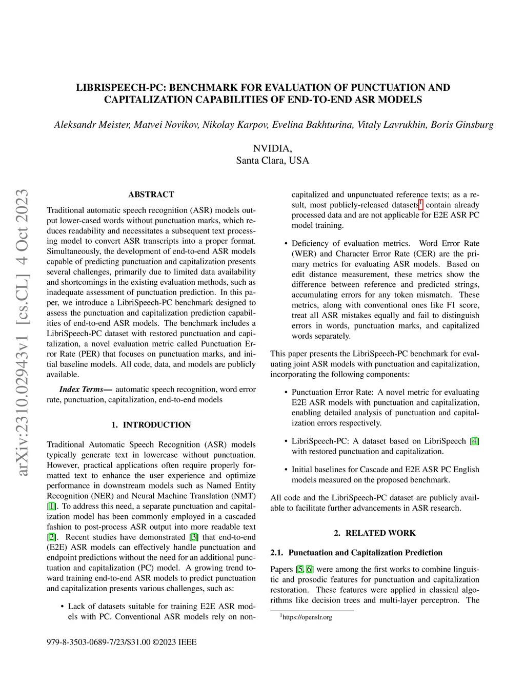 LibriSpeech-PC: Benchmark for Evaluation of Punctuation and