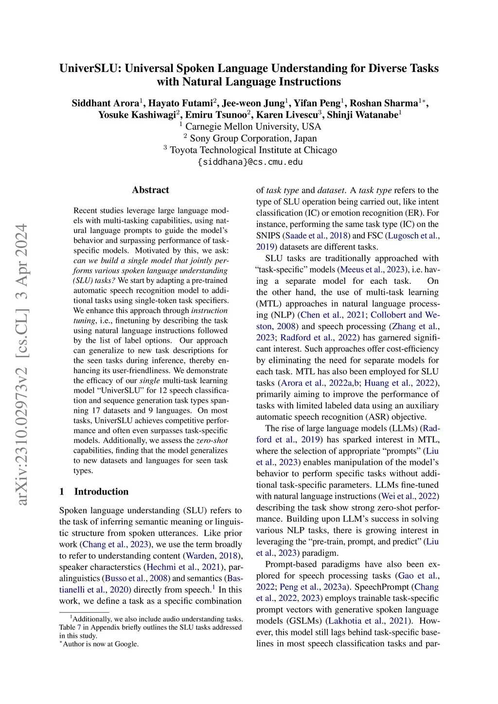UniverSLU: Universal Spoken Language Understanding for Diverse Tasks