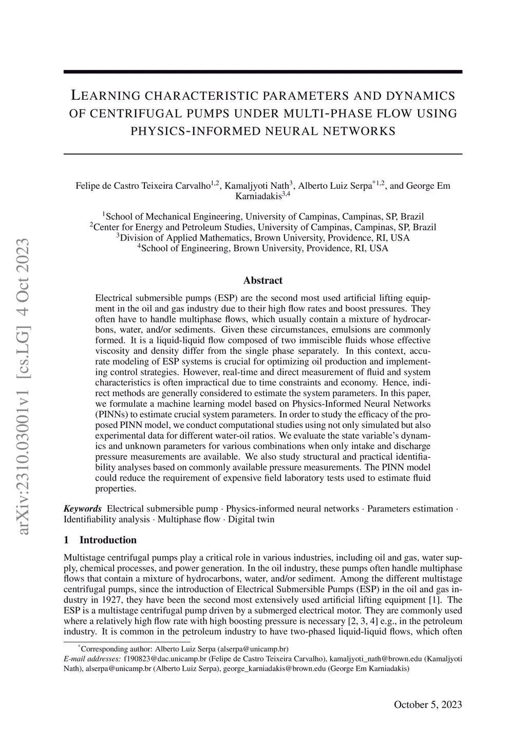 Learning characteristic parameters and dynamics of centrifugal pumps