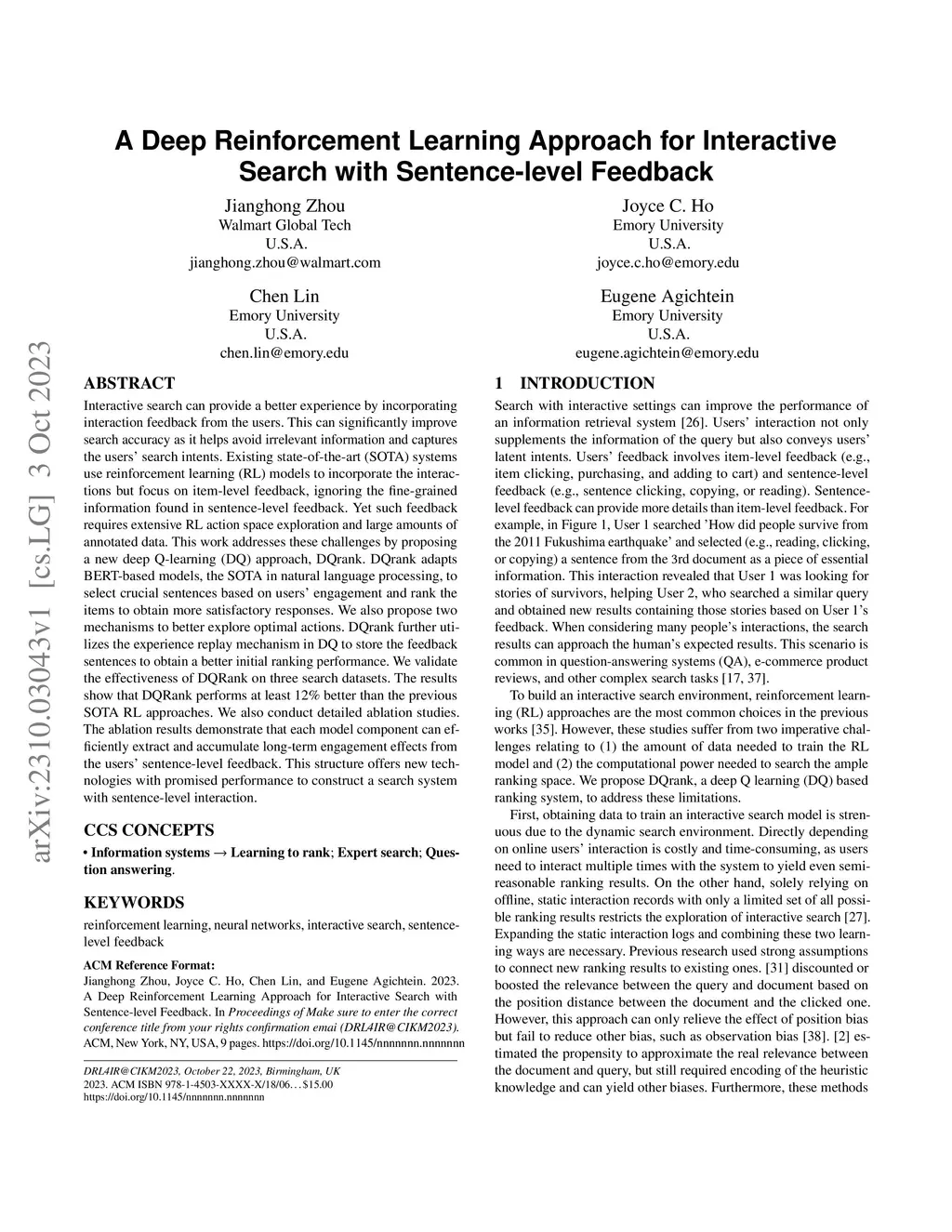 A Deep Reinforcement Learning Approach for Interactive Search with
