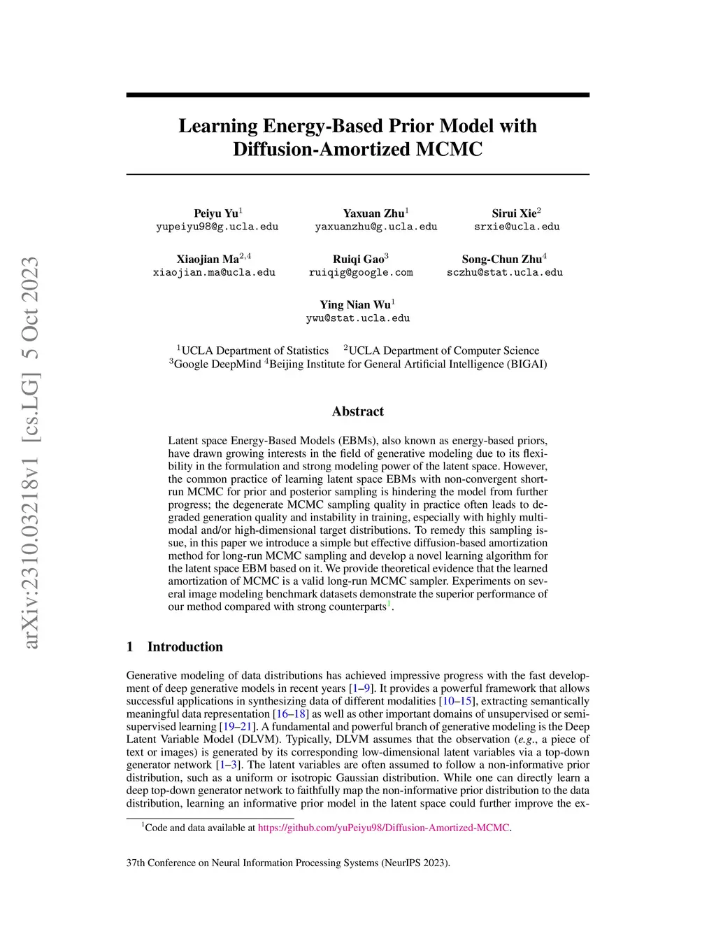 Learning Energy-Based Prior Model with Diffusion-Amortized MCMC