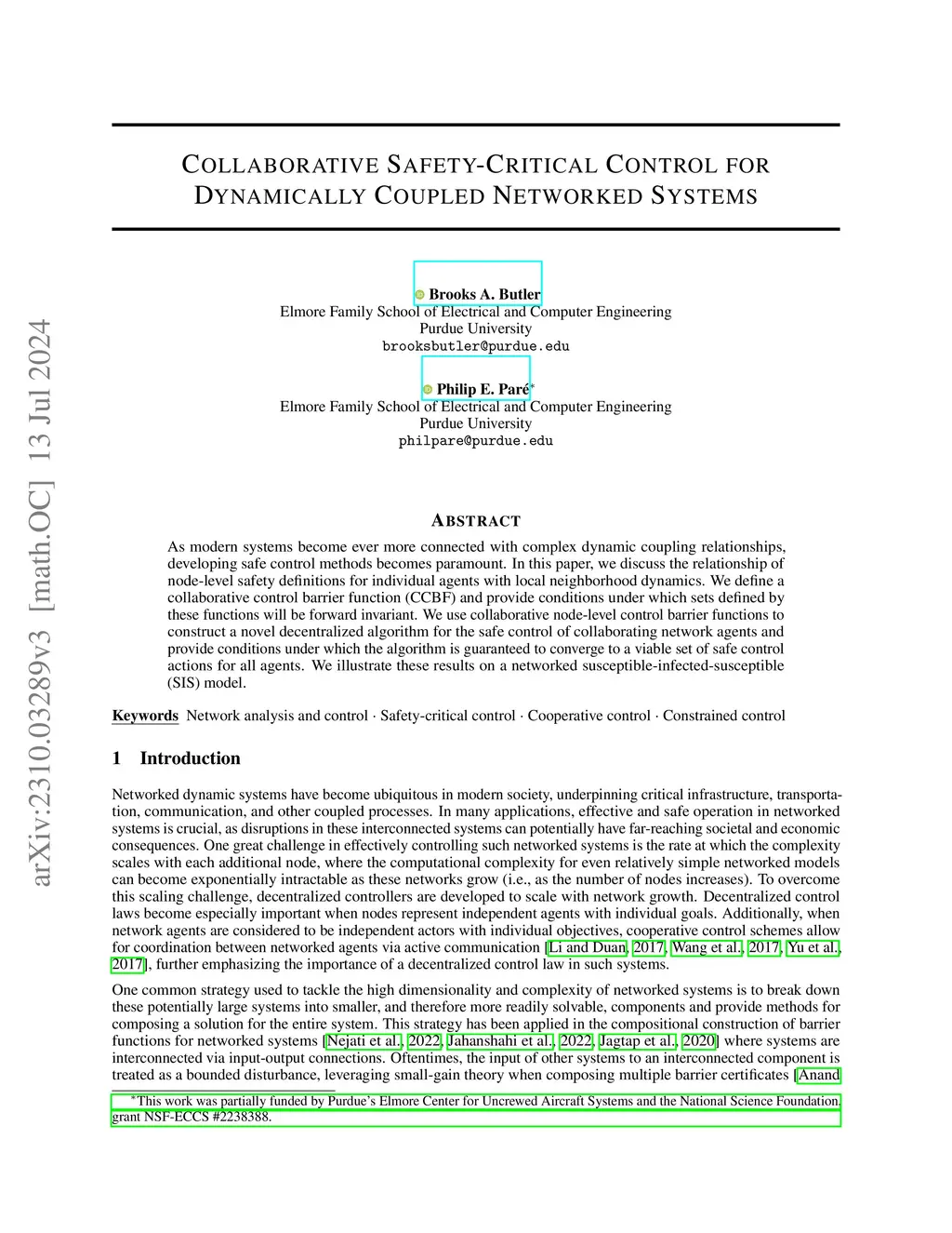 As modern systems become ever more connected with complex dynamic coupling relationships, developing safe control methods becomes paramount. In this paper, we discuss the relationship of node-level safety definitions for individual agents with local neighborhood dynamics. We define a collaborative control barrier function (CCBF) and provide conditions under which sets defined by these functions will be forward invariant. We use collaborative node-level control barrier functions to construct a novel \edit{decentralized} algorithm for the safe control of collaborating network agents and provide conditions under which the algorithm is guaranteed to converge to a viable set of safe control actions for all agents. We illustrate these results on a networked susceptible-infected-susceptible (SIS) model.