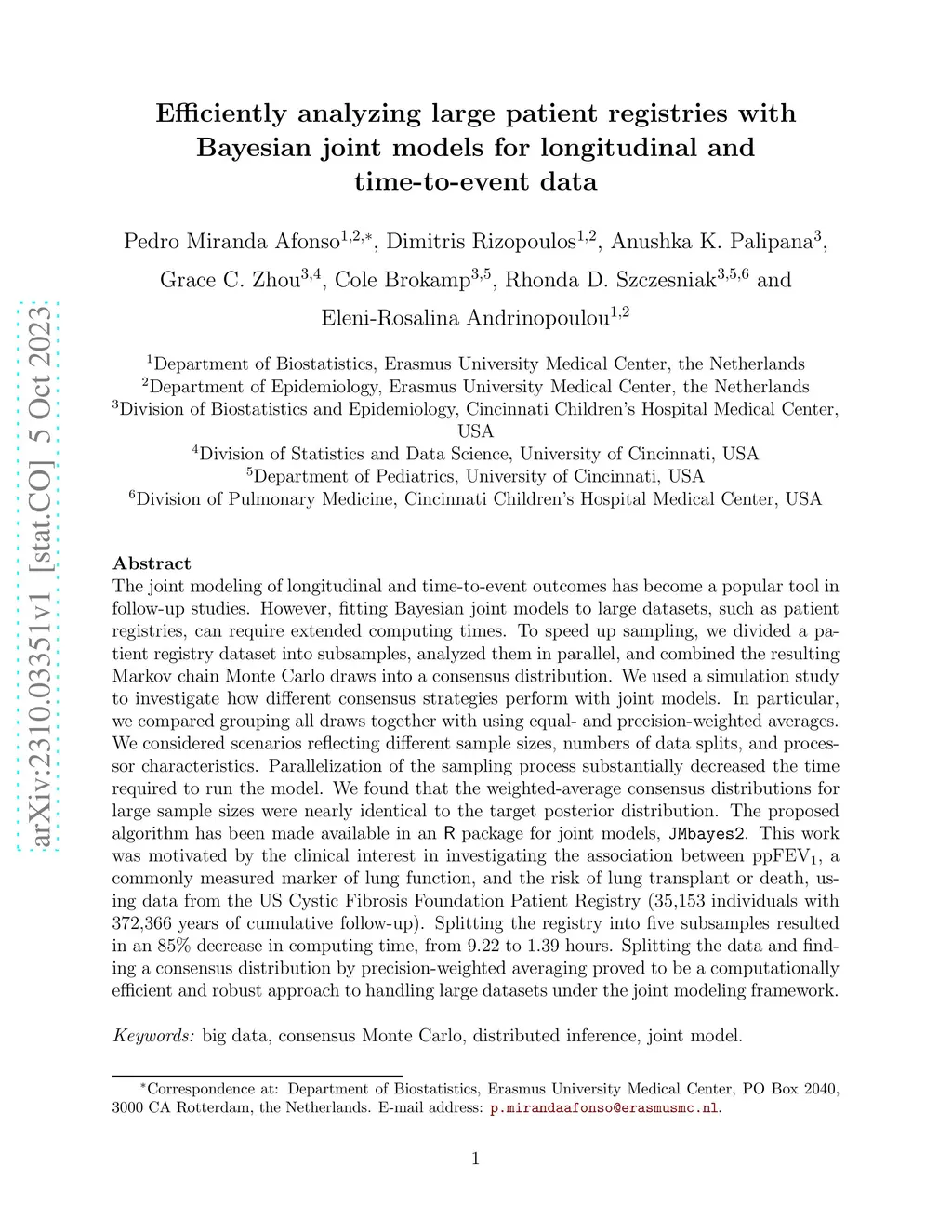Efficiently analyzing large patient registries with Bayesian joint