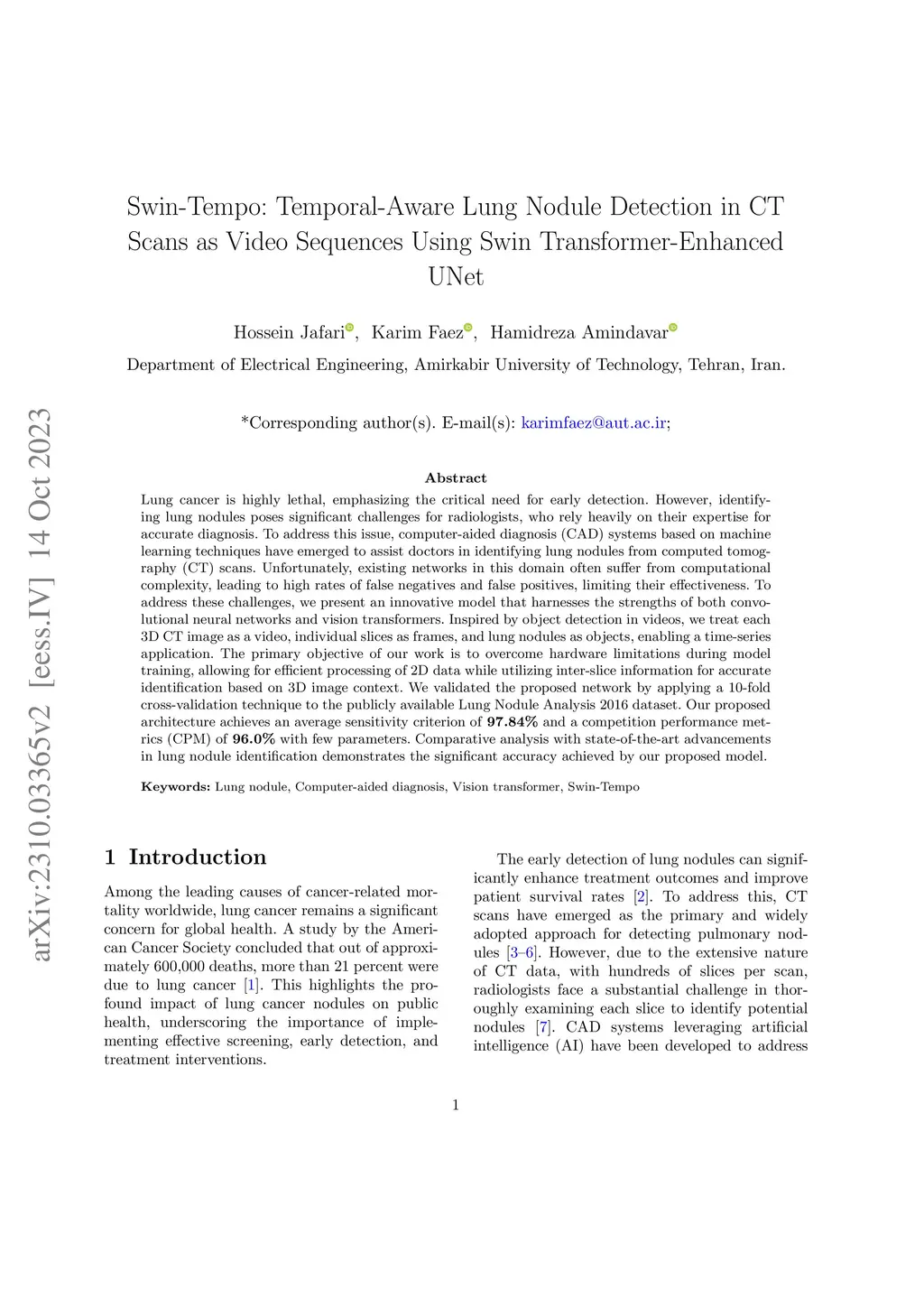 Swin-Tempo: Temporal-Aware Lung Nodule Detection in CT Scans as Video