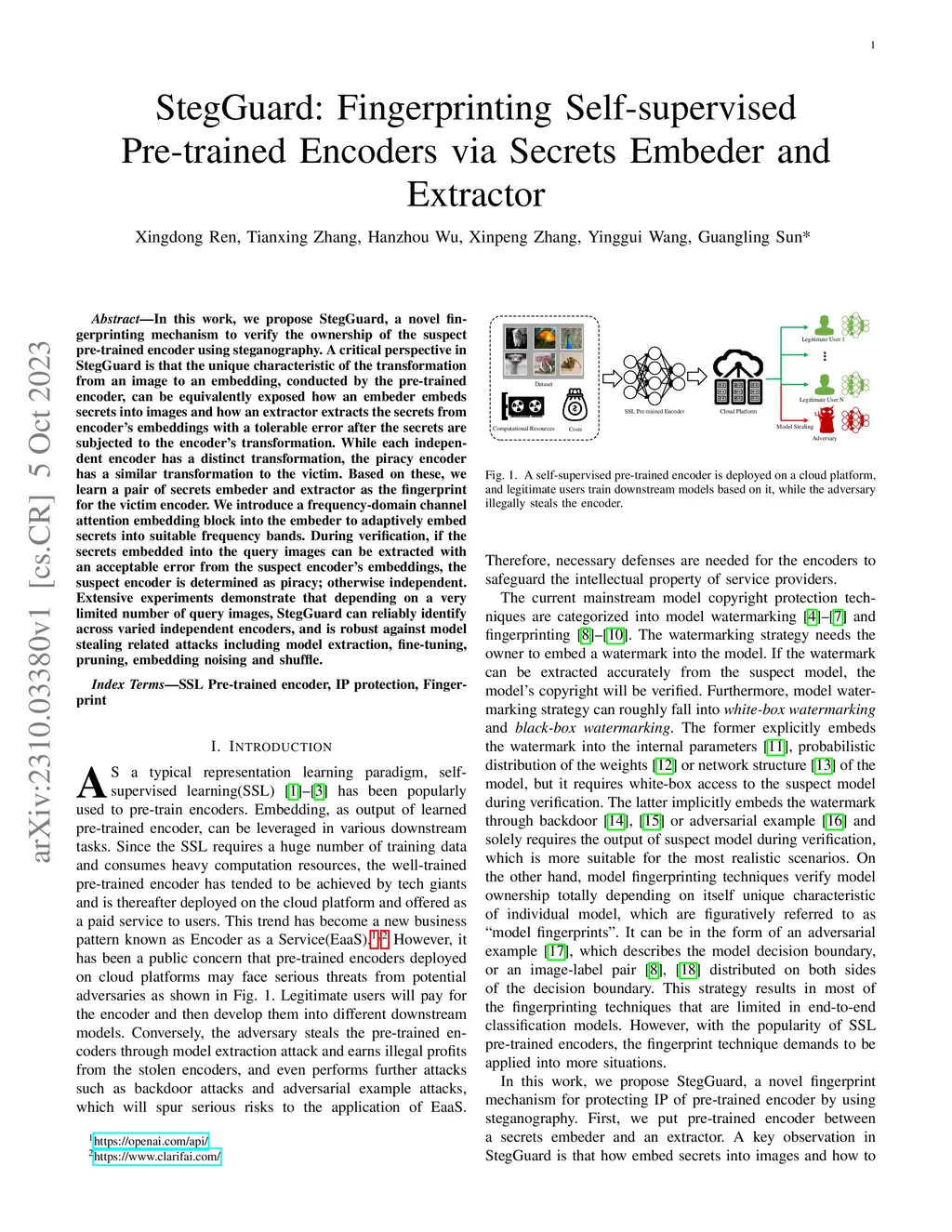 StegGuard: Fingerprinting Self-supervised Pre-trained Encoders via