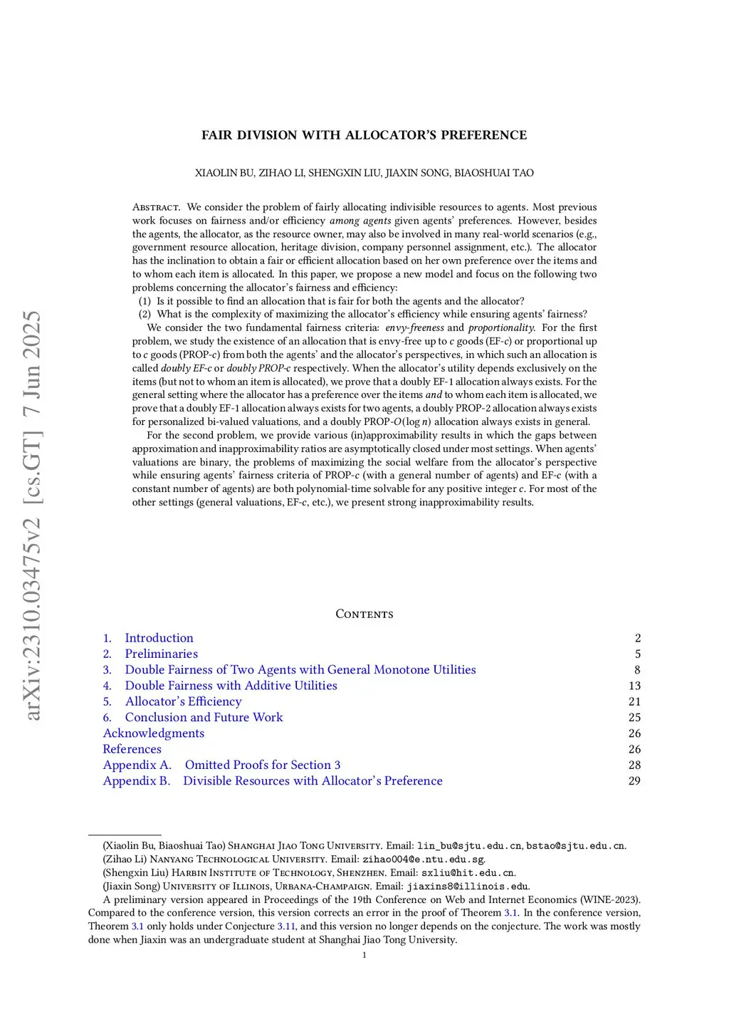 Workshop on Internet and Network Economics (WINE), 2023