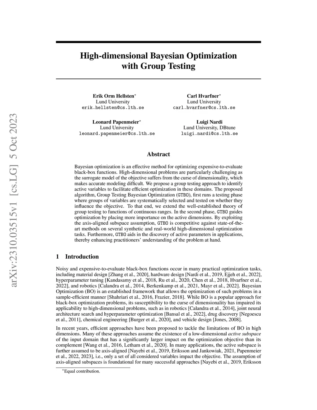 High-dimensional Bayesian Optimization with Group Testing