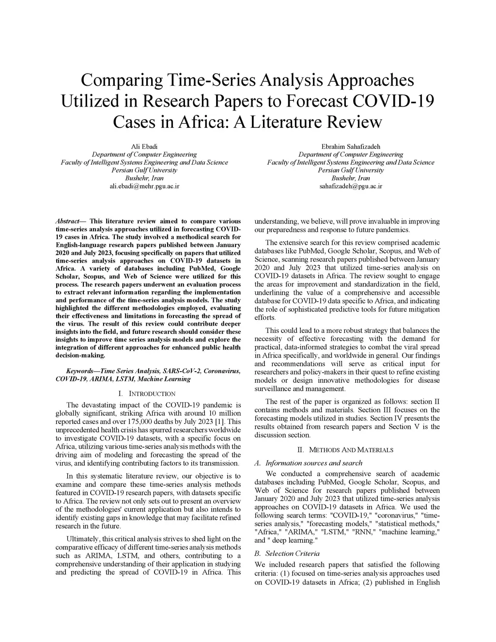 Comparing Time-Series Analysis Approaches Utilized in Research Papers to Forecast COVID-19 Cases in Africa: A Literature Review