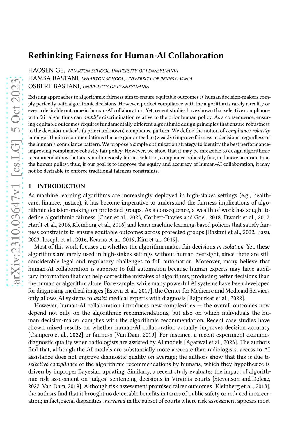 Existing approaches to algorithmic fairness aim to ensure equitable outcomes if human decision-makers comply perfectly with algorithmic decisions. However, perfect compliance with the algorithm is rarely a reality or even a desirable outcome in human-AI collaboration. Yet, recent studies have shown that selective compliance with fair algorithms can amplify discrimination relative to the prior human policy. As a consequence, ensuring equitable outcomes requires fundamentally different algorithmic design principles that ensure robustness to the decision-maker's (a priori unknown) compliance pattern. We define the notion of compliance-robustly fair algorithmic recommendations that are guaranteed to (weakly) improve fairness in decisions, regardless of the human's compliance pattern. We propose a simple optimization strategy to identify the best performance-improving compliance-robustly fair policy. However, we show that it may be infeasible to design algorithmic recommendations that are simultaneously fair in isolation, compliance-robustly fair, and more accurate than the human policy; thus, if our goal is to improve the equity and accuracy of human-AI collaboration, it may not be desirable to enforce traditional algorithmic fairness constraints. We illustrate the value of our approach on criminal sentencing data before and after the introduction of an algorithmic risk assessment tool in Virginia.