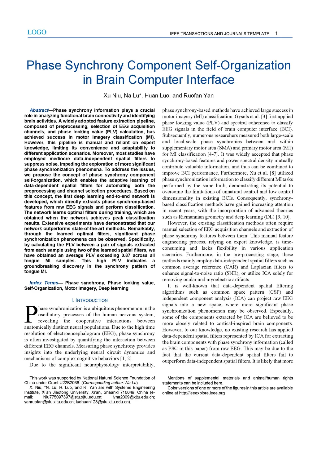 Phase Synchrony Component Self-Organization in Brain Computer Interface