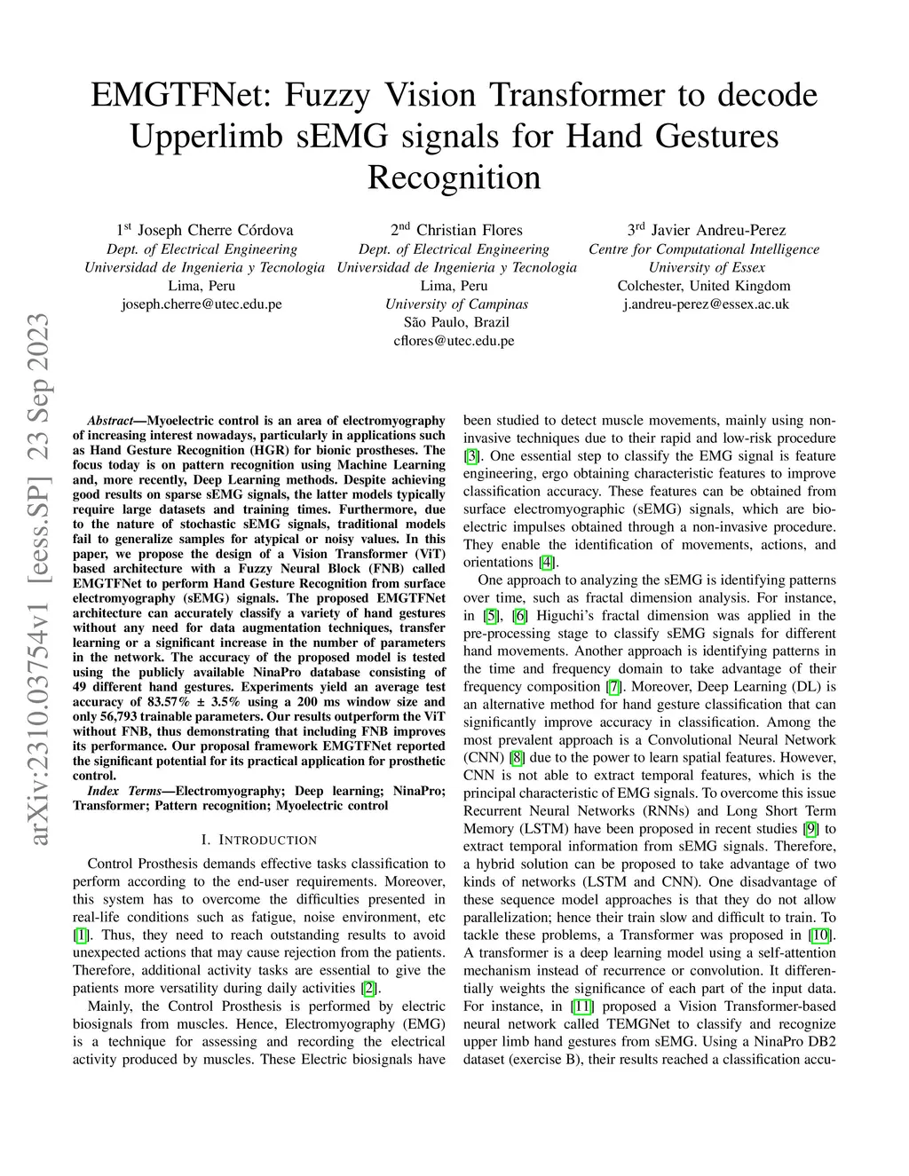 EMGTFNet: Fuzzy Vision Transformer to decode Upperlimb sEMG signals for