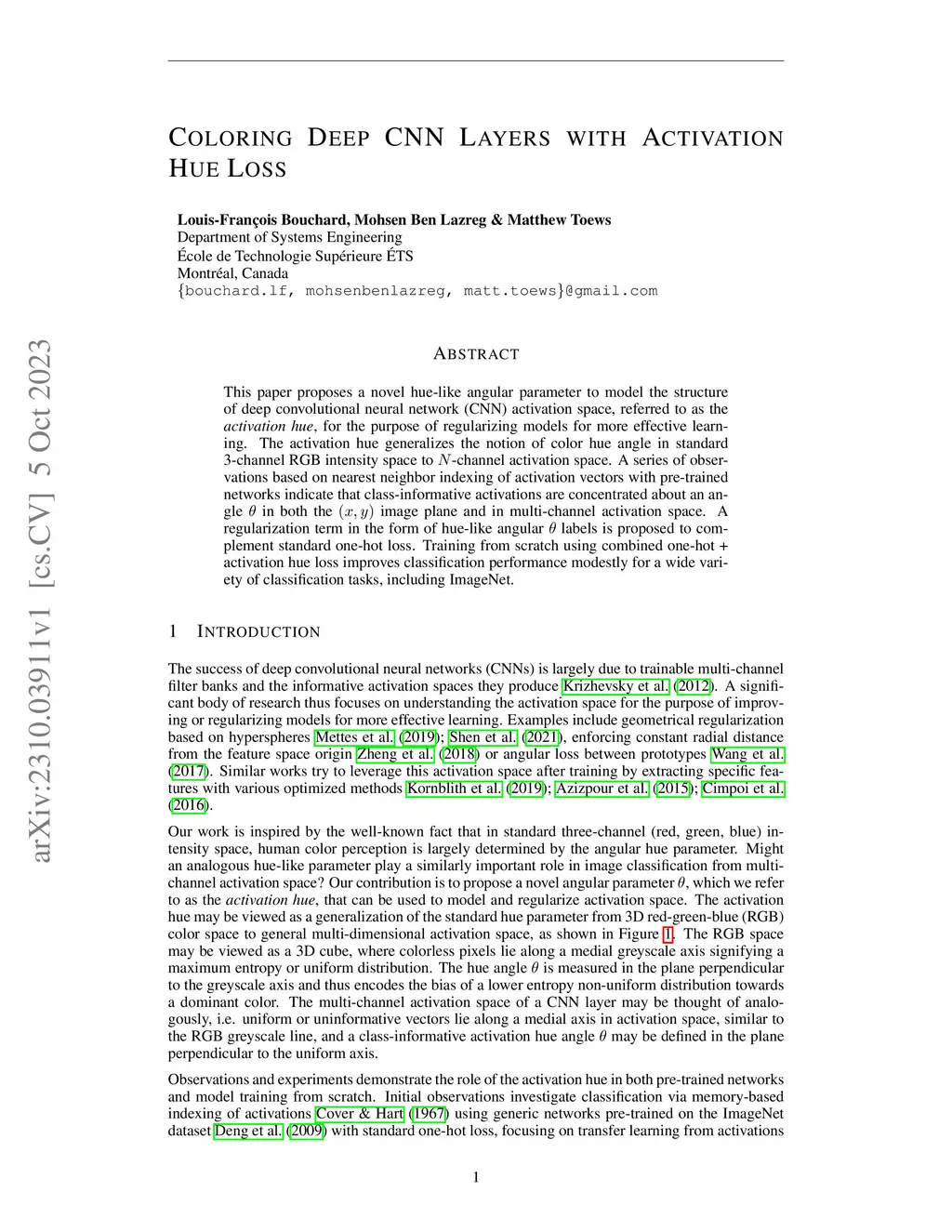 This paper proposes a novel hue-like angular parameter to model the structure of deep convolutional neural network (CNN) activation space, referred to as the {\em activation hue}, for the purpose of regularizing models for more effective learning. The activation hue generalizes the notion of color hue angle in standard 3-channel RGB intensity space to -channel activation space. A series of observations based on nearest neighbor indexing of activation vectors with pre-trained networks indicate that class-informative activations are concentrated about an angle in both the image plane and in multi-channel activation space. A regularization term in the form of hue-like angular labels is proposed to complement standard one-hot loss. Training from scratch using combined one-hot + activation hue loss improves classification performance modestly for a wide variety of classification tasks, including ImageNet.