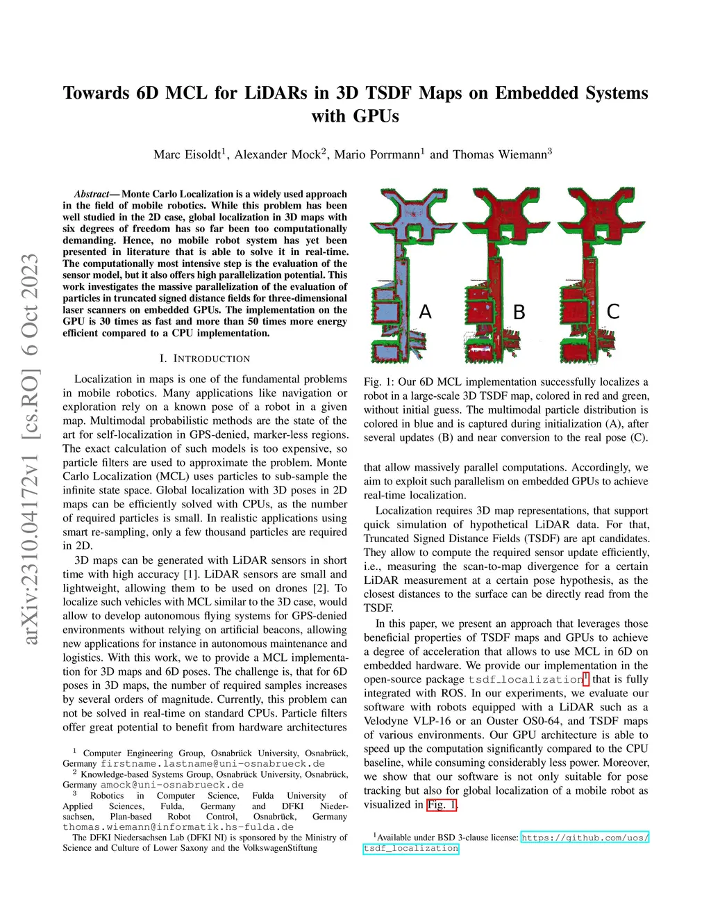 Towards 6D MCL for LiDARs in 3D TSDF Maps on Embedded Systems with GPUs