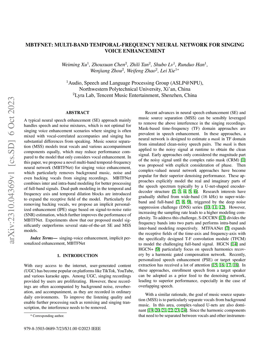 MBTFNet: Multi-Band Temporal-Frequency Neural Network For Singing Voice