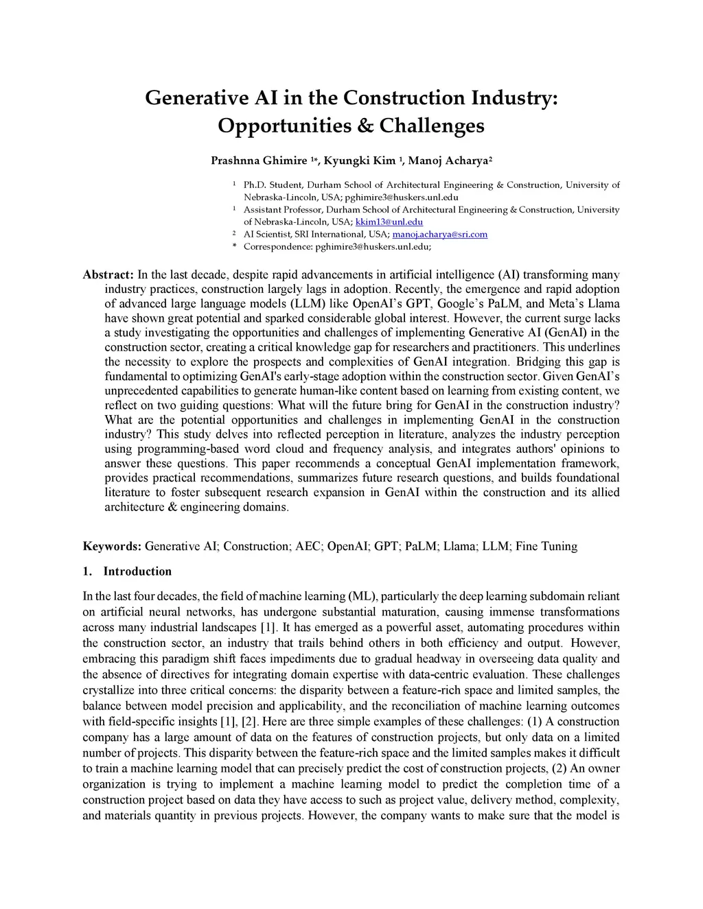 Generative AI in the Construction Industry: Opportunities & Challenges