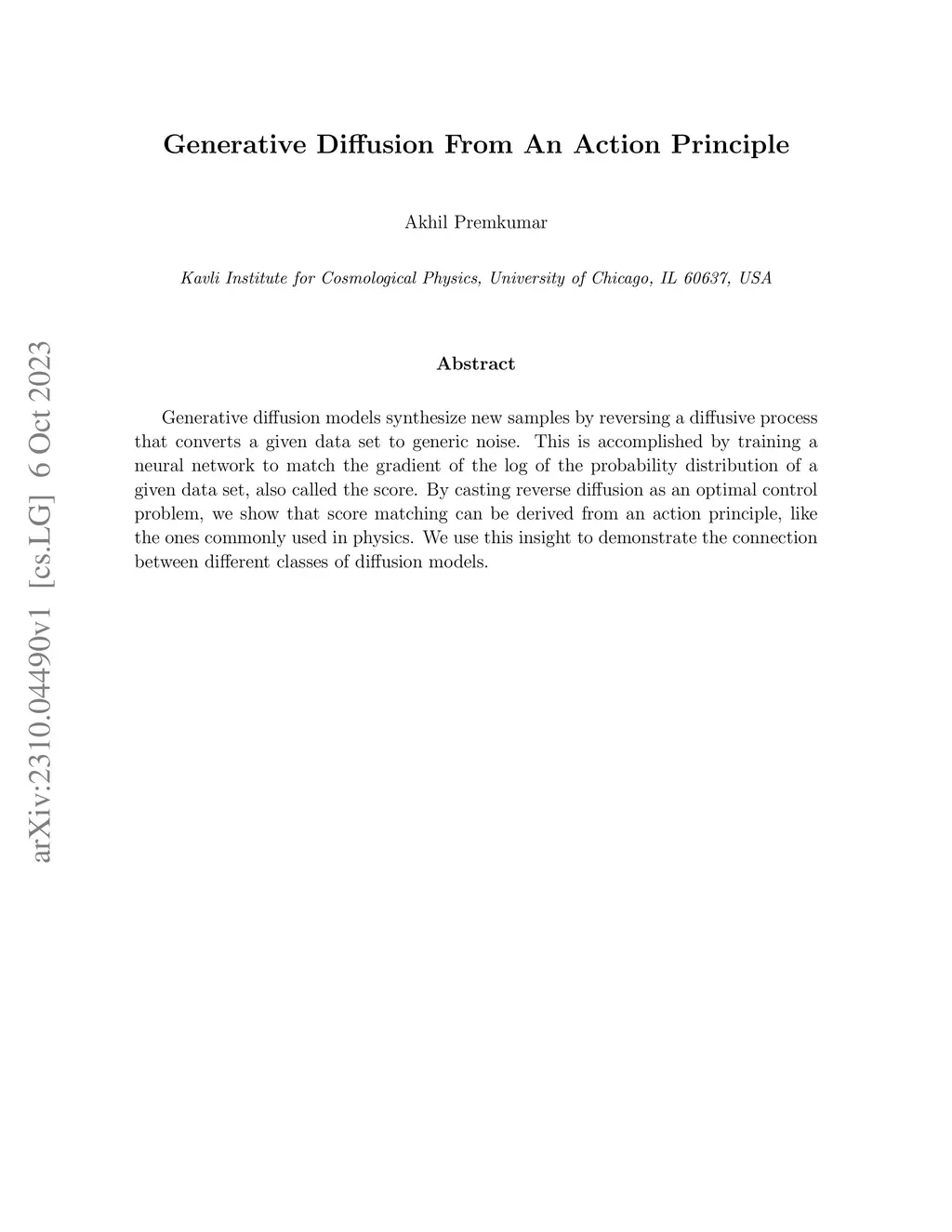 Generative diffusion models synthesize new samples by reversing a diffusive process that converts a given data set to generic noise. This is accomplished by training a neural network to match the gradient of the log of the probability distribution of a given data set, also called the score. By casting reverse diffusion as an optimal control problem, we show that score matching can be derived from an action principle, like the ones commonly used in physics. We use this insight to demonstrate the connection between different classes of diffusion models.