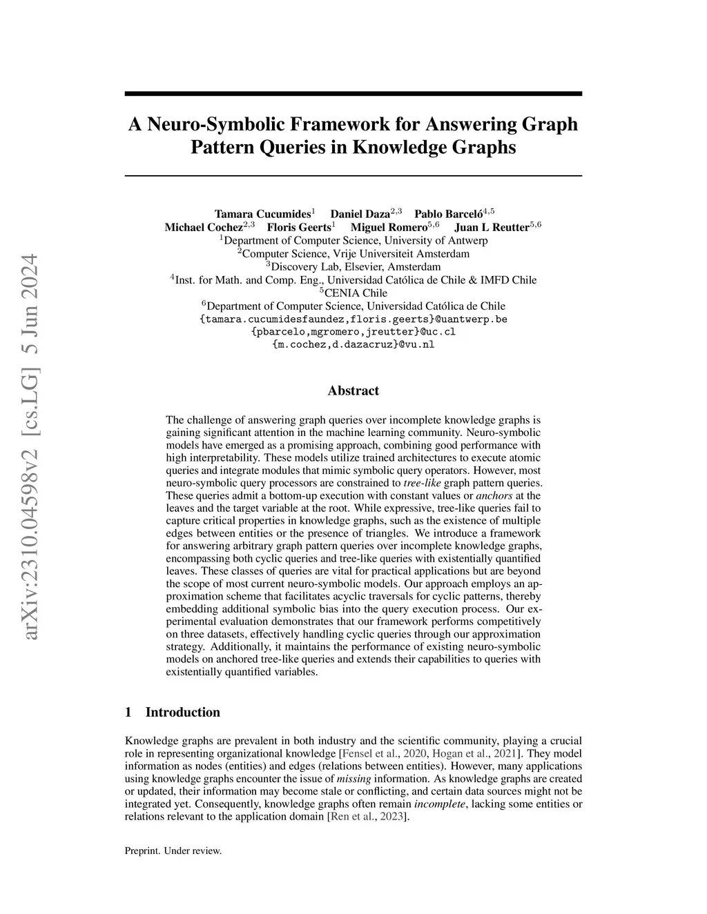 The challenge of answering graph queries over incomplete knowledge graphs is gaining significant attention in the machine learning community. Neuro-symbolic models have emerged as a promising approach, combining good performance with high interpretability. These models utilize trained architectures to execute atomic queries and integrate modules that mimic symbolic query operators. However, most neuro-symbolic query processors are constrained to tree-like graph pattern queries. These queries admit a bottom-up execution with constant values or anchors at the leaves and the target variable at the root. While expressive, tree-like queries fail to capture critical properties in knowledge graphs, such as the existence of multiple edges between entities or the presence of triangles. We introduce a framework for answering arbitrary graph pattern queries over incomplete knowledge graphs, encompassing both cyclic queries and tree-like queries with existentially quantified leaves. These classes of queries are vital for practical applications but are beyond the scope of most current neuro-symbolic models. Our approach employs an approximation scheme that facilitates acyclic traversals for cyclic patterns, thereby embedding additional symbolic bias into the query execution process. Our experimental evaluation demonstrates that our framework performs competitively on three datasets, effectively handling cyclic queries through our approximation strategy. Additionally, it maintains the performance of existing neuro-symbolic models on anchored tree-like queries and extends their capabilities to queries with existentially quantified variables.
