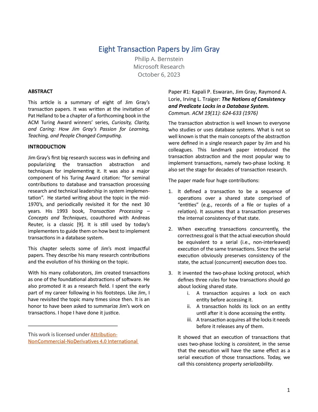 Eight Transaction Papers by Jim Gray