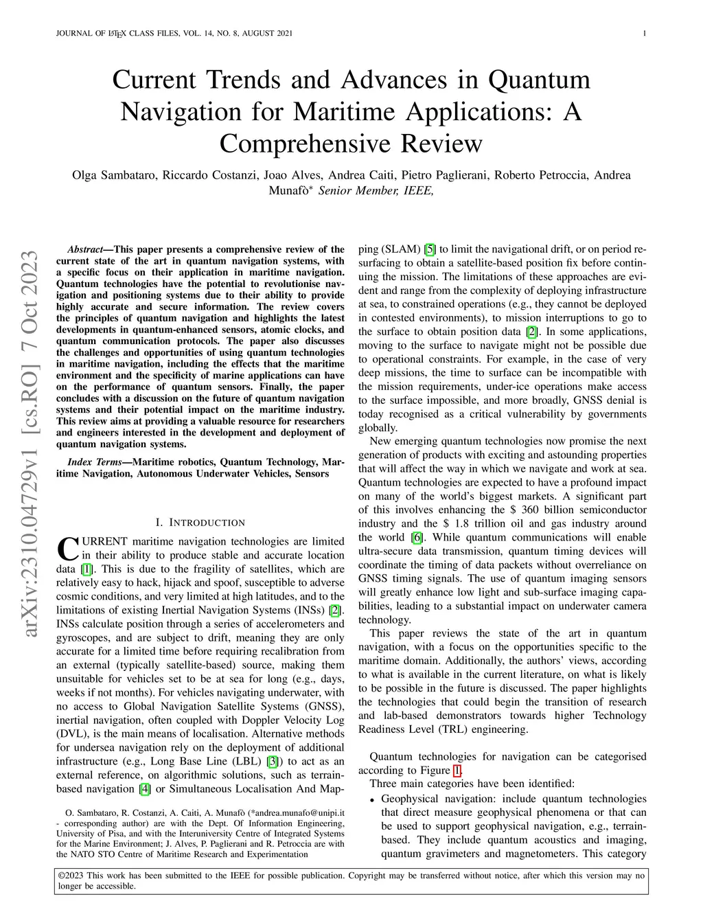 Current Trends and Advances in Quantum Navigation for Maritime