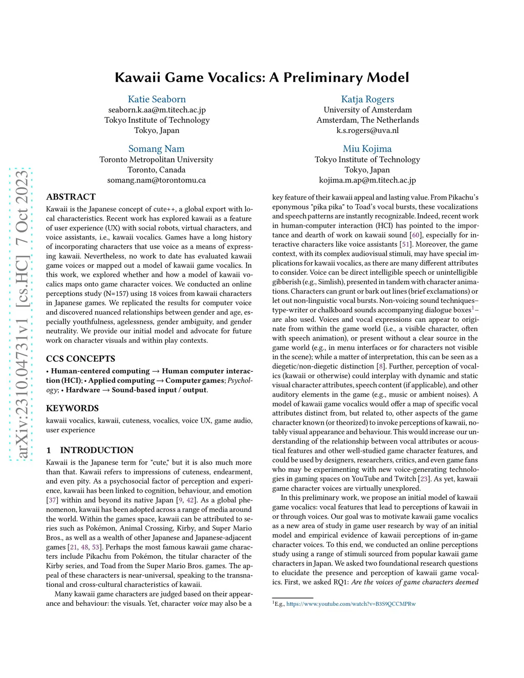Kawaii Game Vocalics: A Preliminary Model
