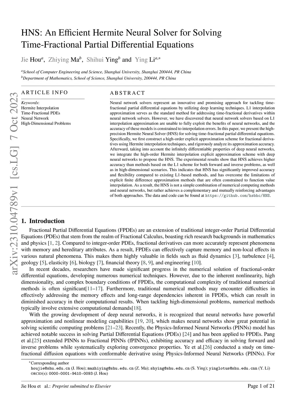 HNS: An Efficient Hermite Neural Solver for Solving Time-Fractional