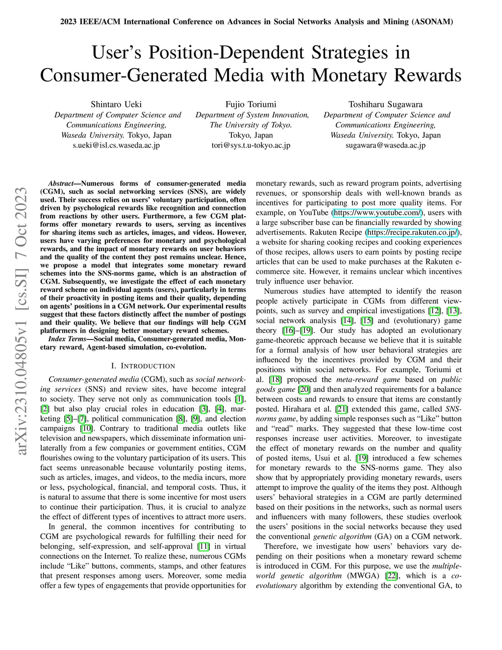 Numerous forms of consumer-generated media (CGM), such as social networking services (SNS), are widely used. Their success relies on users' voluntary participation, often driven by psychological rewards like recognition and connection from reactions by other users. Furthermore, a few CGM platforms offer monetary rewards to users, serving as incentives for sharing items such as articles, images, and videos. However, users have varying preferences for monetary and psychological rewards, and the impact of monetary rewards on user behaviors and the quality of the content they post remains unclear. Hence, we propose a model that integrates some monetary reward schemes into the SNS-norms game, which is an abstraction of CGM. Subsequently, we investigate the effect of each monetary reward scheme on individual agents (users), particularly in terms of their proactivity in posting items and their quality, depending on agents' positions in a CGM network. Our experimental results suggest that these factors distinctly affect the number of postings and their quality. We believe that our findings will help CGM platformers in designing better monetary reward schemes.