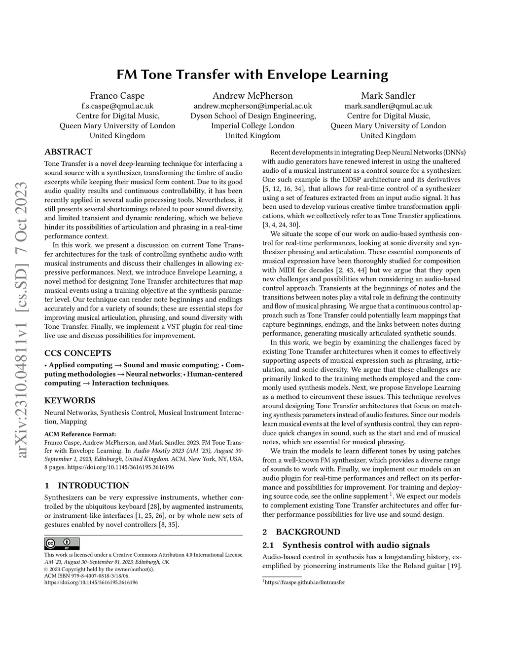 FM Tone Transfer with Envelope Learning