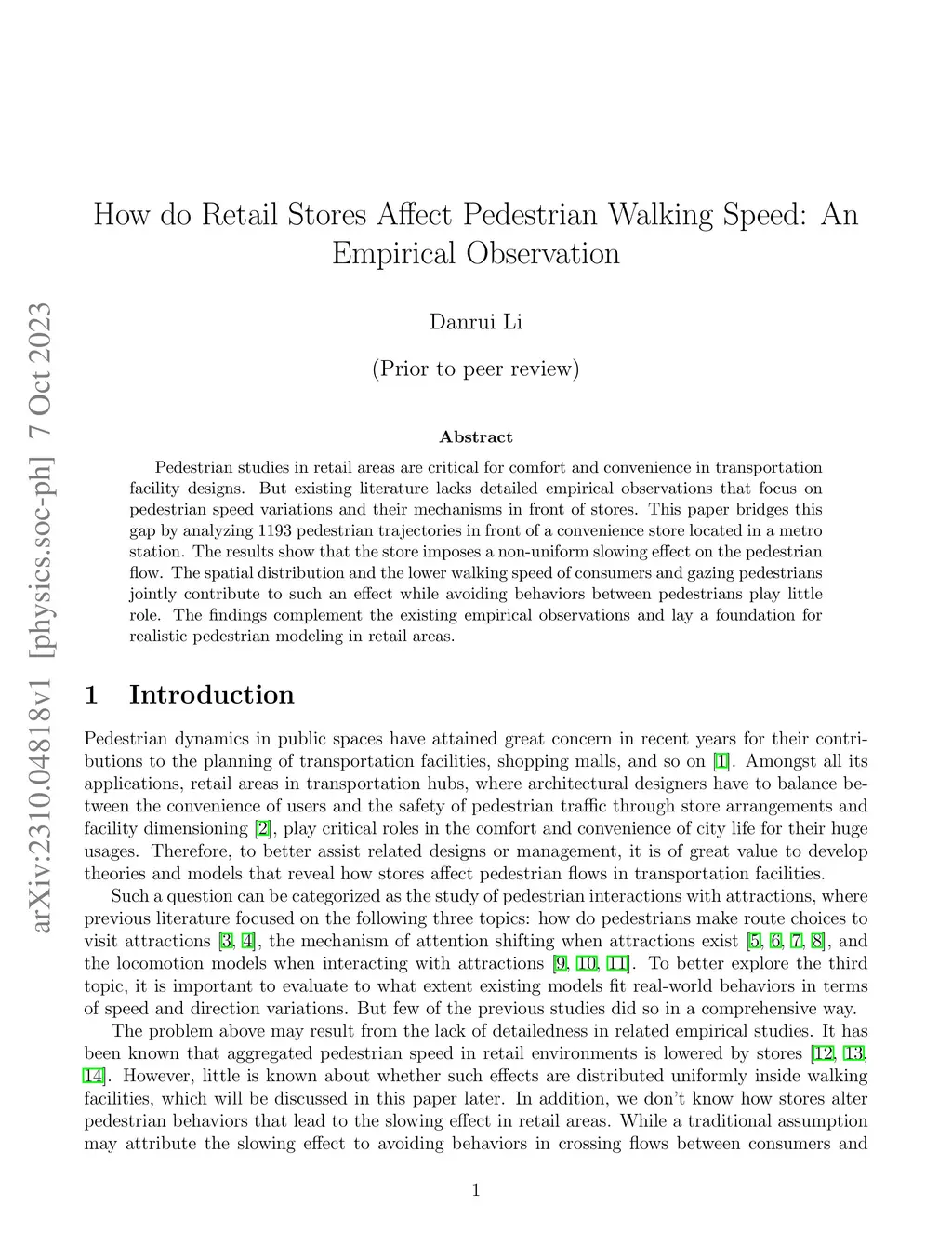 How do Retail Stores Affect Pedestrian Walking Speed: An Empirical