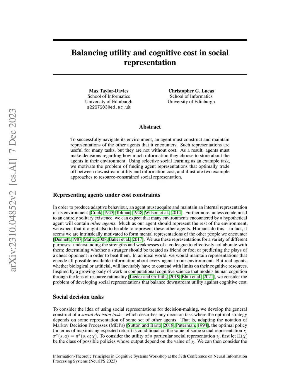 To successfully navigate its environment, an agent must construct and maintain representations of the other agents that it encounters. Such representations are useful for many tasks, but they are not without cost. As a result, agents must make decisions regarding how much information they choose to store about the agents in their environment. Using selective social learning as an example task, we motivate the problem of finding agent representations that optimally trade off between downstream utility and information cost, and illustrate two example approaches to resource-constrained social representation.