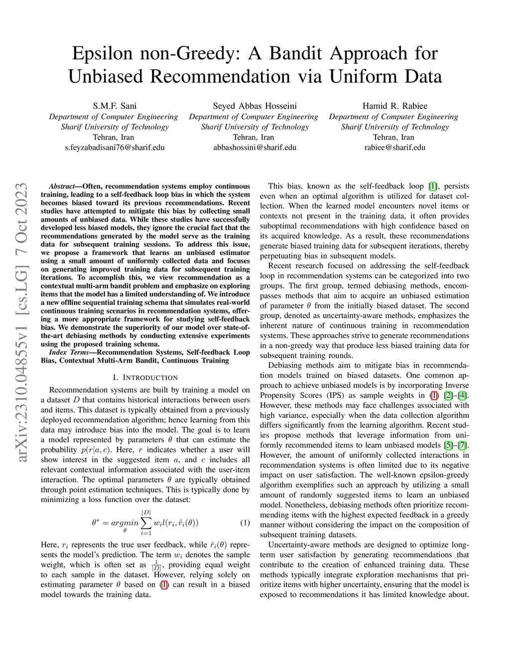 Epsilon non-Greedy: A Bandit Approach for Unbiased Recommendation via