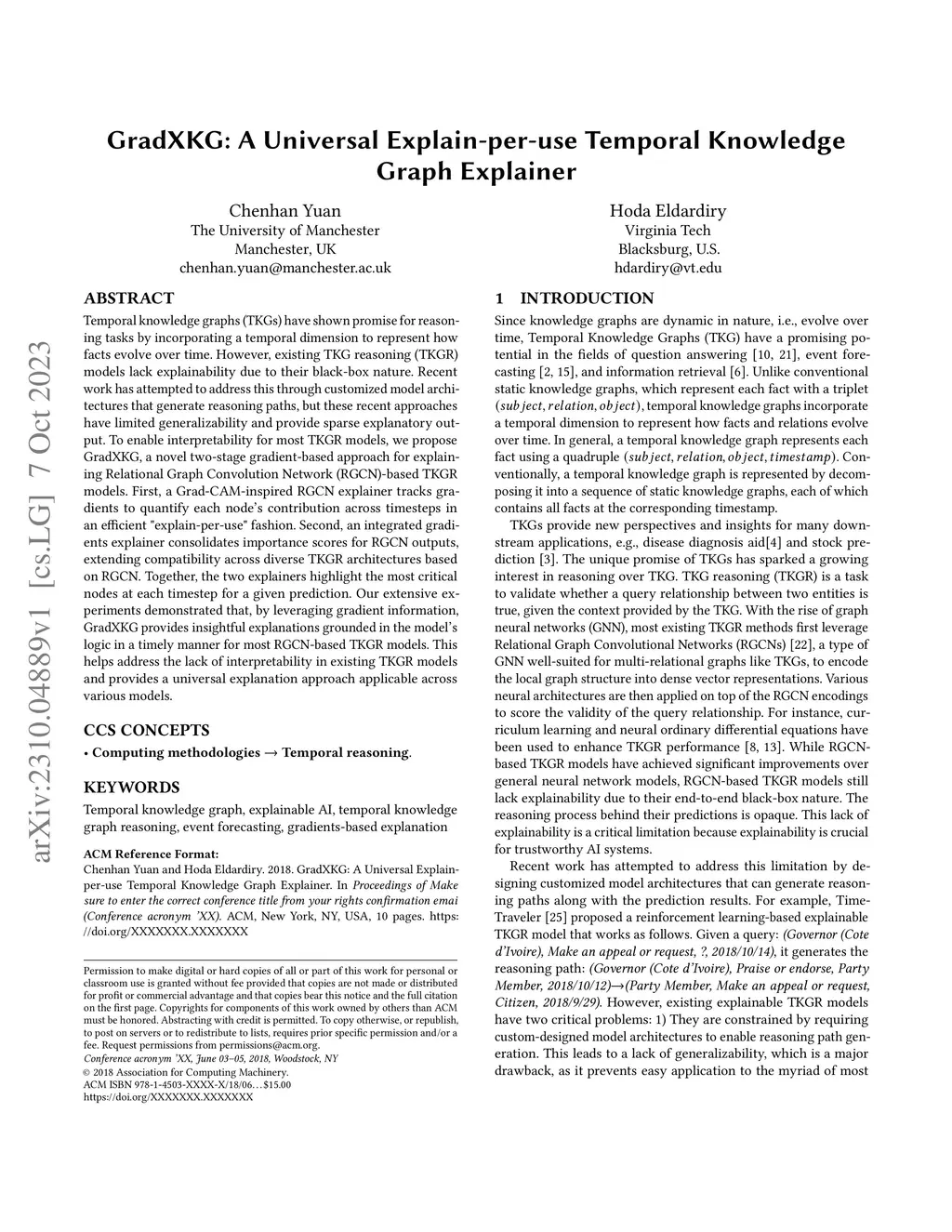 GradXKG: A Universal Explain-per-use Temporal Knowledge Graph Explainer