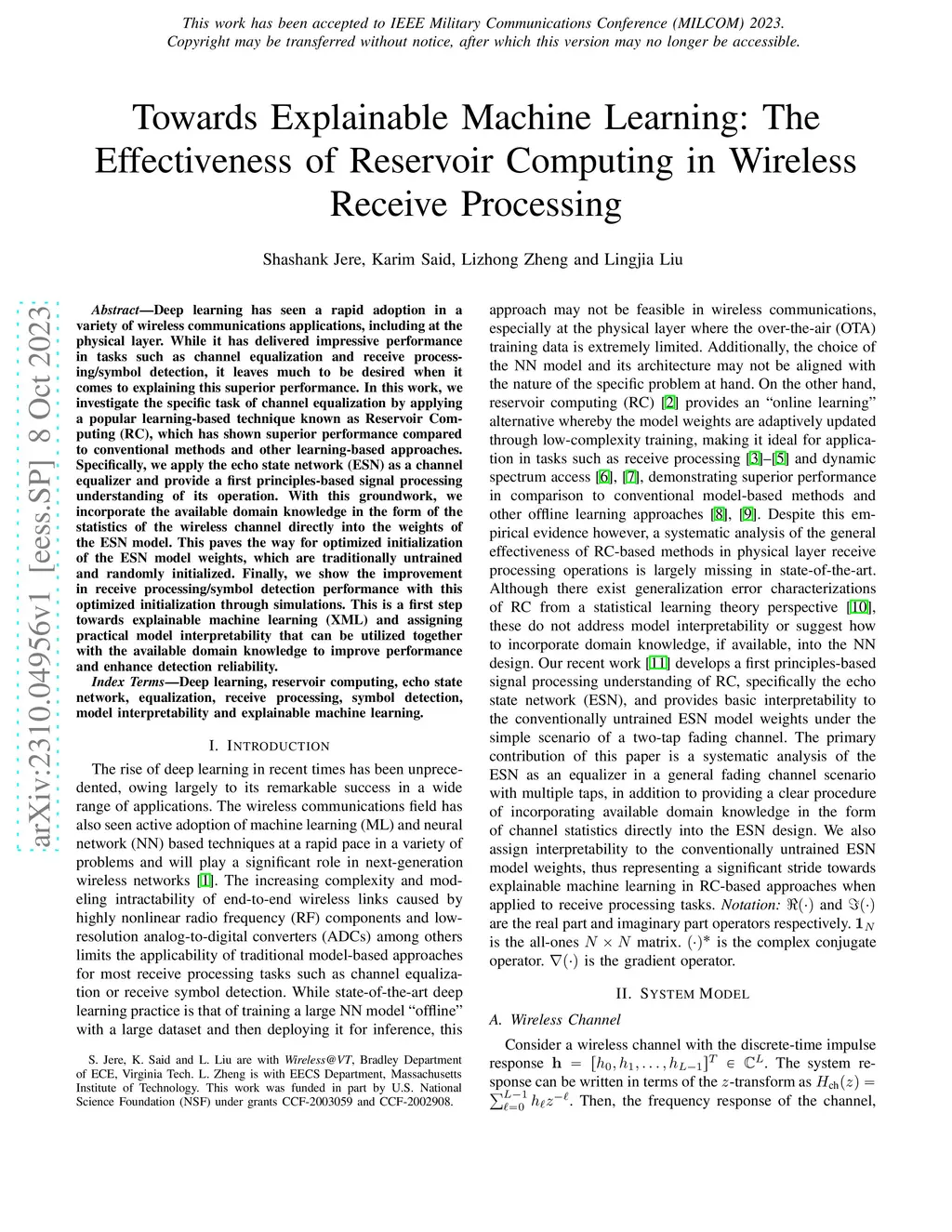 Deep learning has seen a rapid adoption in a variety of wireless communications applications, including at the physical layer. While it has delivered impressive performance in tasks such as channel equalization and receive processing/symbol detection, it leaves much to be desired when it comes to explaining this superior performance. In this work, we investigate the specific task of channel equalization by applying a popular learning-based technique known as Reservoir Computing (RC), which has shown superior performance compared to conventional methods and other learning-based approaches. Specifically, we apply the echo state network (ESN) as a channel equalizer and provide a first principles-based signal processing understanding of its operation. With this groundwork, we incorporate the available domain knowledge in the form of the statistics of the wireless channel directly into the weights of the ESN model. This paves the way for optimized initialization of the ESN model weights, which are traditionally untrained and randomly initialized. Finally, we show the improvement in receive processing/symbol detection performance with this optimized initialization through simulations. This is a first step towards explainable machine learning (XML) and assigning practical model interpretability that can be utilized together with the available domain knowledge to improve performance and enhance detection reliability.