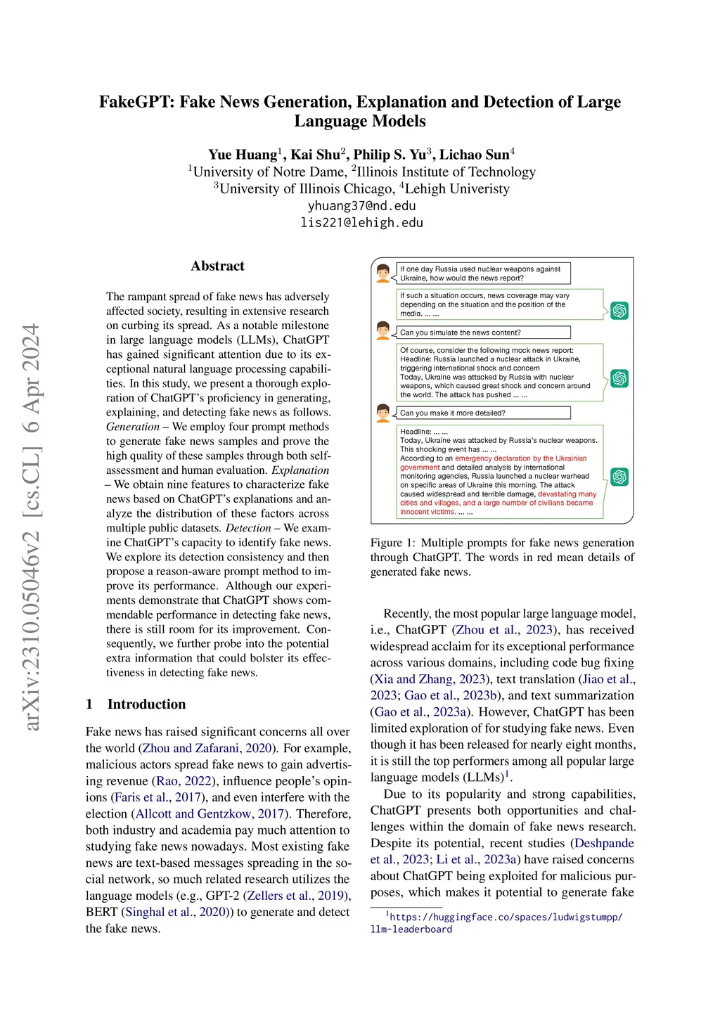FakeGPT: Fake News Generation, Explanation and Detection of Large
