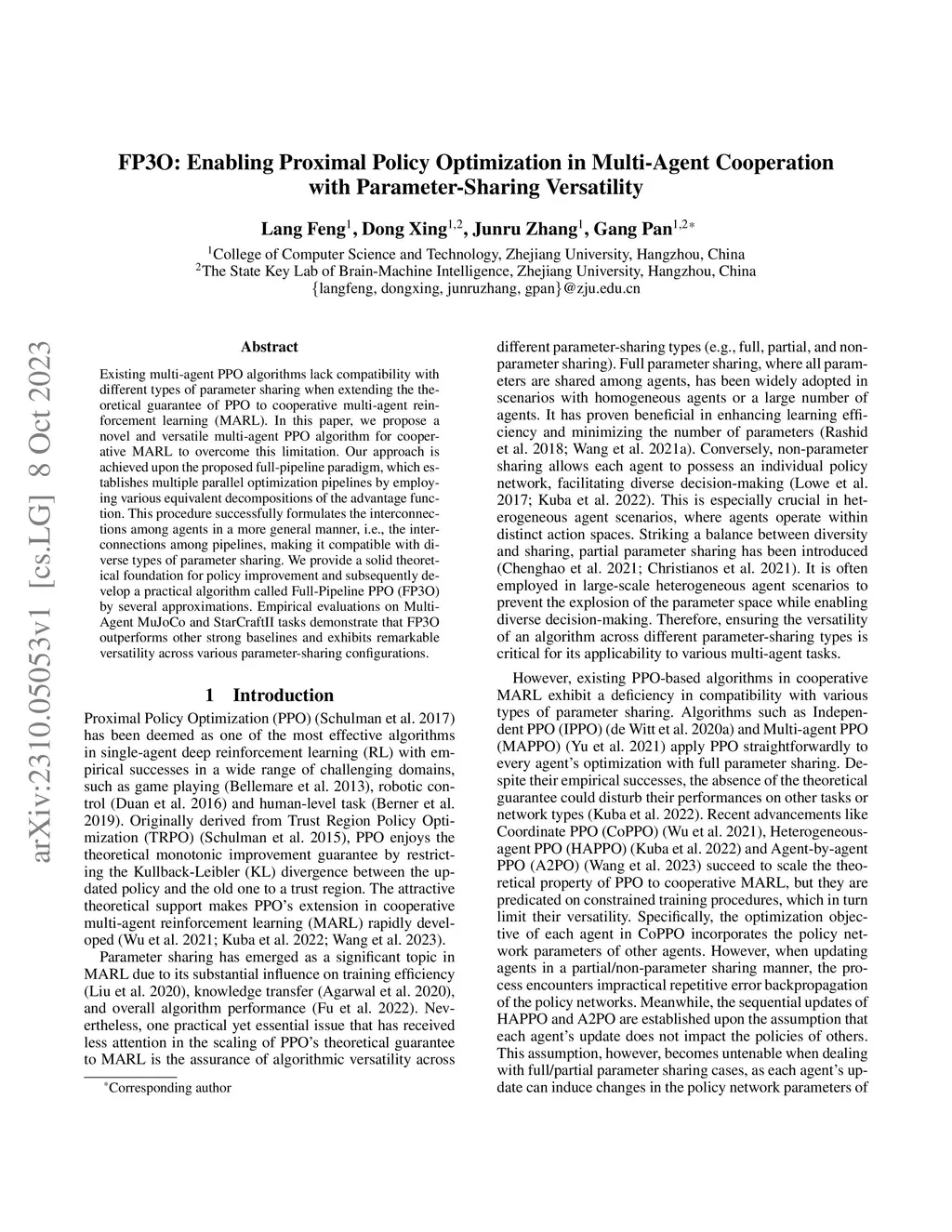 Existing multi-agent PPO algorithms lack compatibility with different types of parameter sharing when extending the theoretical guarantee of PPO to cooperative multi-agent reinforcement learning (MARL). In this paper, we propose a novel and versatile multi-agent PPO algorithm for cooperative MARL to overcome this limitation. Our approach is achieved upon the proposed full-pipeline paradigm, which establishes multiple parallel optimization pipelines by employing various equivalent decompositions of the advantage function. This procedure successfully formulates the interconnections among agents in a more general manner, i.e., the interconnections among pipelines, making it compatible with diverse types of parameter sharing. We provide a solid theoretical foundation for policy improvement and subsequently develop a practical algorithm called Full-Pipeline PPO (FP3O) by several approximations. Empirical evaluations on Multi-Agent MuJoCo and StarCraftII tasks demonstrate that FP3O outperforms other strong baselines and exhibits remarkable versatility across various parameter-sharing configurations.