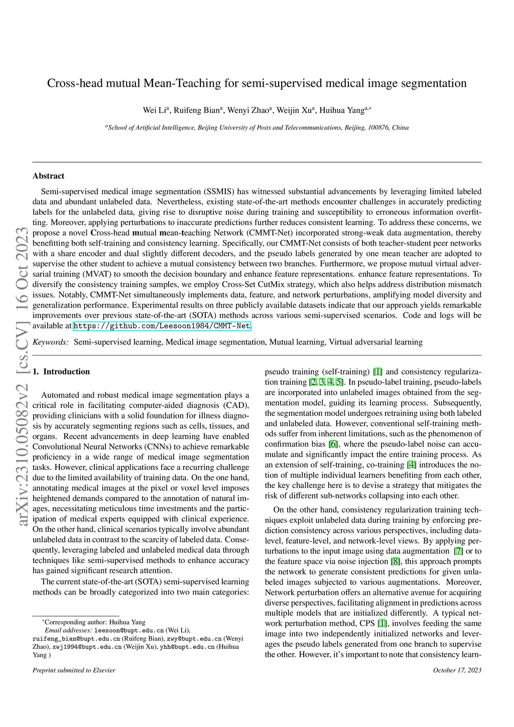 Cross-head mutual Mean-Teaching for semi-supervised medical image