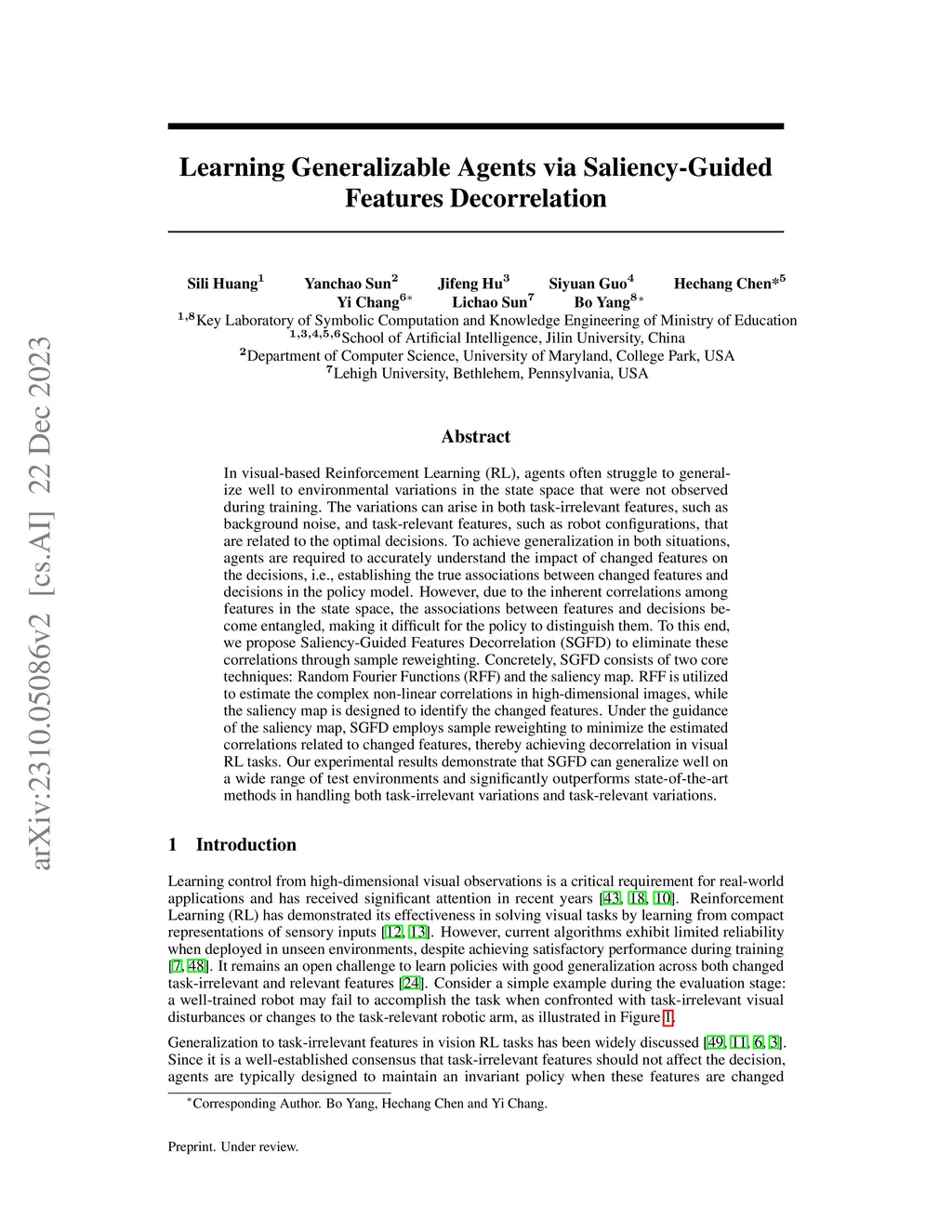 Learning Generalizable Agents via Saliency-Guided Features Decorrelation