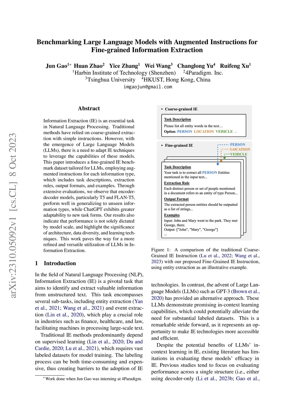 Information Extraction (IE) is an essential task in Natural Language Processing. Traditional methods have relied on coarse-grained extraction with simple instructions. However, with the emergence of Large Language Models (LLMs), there is a need to adapt IE techniques to leverage the capabilities of these models. This paper introduces a fine-grained IE benchmark dataset tailored for LLMs, employing augmented instructions for each information type, which includes task descriptions, extraction rules, output formats, and examples. Through extensive evaluations, we observe that encoder-decoder models, particularly T5 and FLAN-T5, perform well in generalizing to unseen information types, while ChatGPT exhibits greater adaptability to new task forms. Our results also indicate that performance is not solely dictated by model scale, and highlight the significance of architecture, data diversity, and learning techniques. This work paves the way for a more refined and versatile utilization of LLMs in Information Extraction.