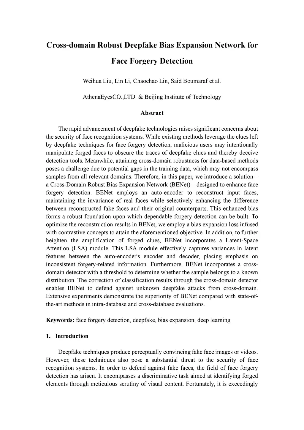 The rapid advancement of deepfake technologies raises significant concerns about the security of face recognition systems. While existing methods leverage the clues left by deepfake techniques for face forgery detection, malicious users may intentionally manipulate forged faces to obscure the traces of deepfake clues and thereby deceive detection tools. Meanwhile, attaining cross-domain robustness for data-based methods poses a challenge due to potential gaps in the training data, which may not encompass samples from all relevant domains. Therefore, in this paper, we introduce a solution - a Cross-Domain Robust Bias Expansion Network (BENet) - designed to enhance face forgery detection. BENet employs an auto-encoder to reconstruct input faces, maintaining the invariance of real faces while selectively enhancing the difference between reconstructed fake faces and their original counterparts. This enhanced bias forms a robust foundation upon which dependable forgery detection can be built. To optimize the reconstruction results in BENet, we employ a bias expansion loss infused with contrastive concepts to attain the aforementioned objective. In addition, to further heighten the amplification of forged clues, BENet incorporates a Latent-Space Attention (LSA) module. This LSA module effectively captures variances in latent features between the auto-encoder's encoder and decoder, placing emphasis on inconsistent forgery-related information. Furthermore, BENet incorporates a cross-domain detector with a threshold to determine whether the sample belongs to a known distribution. The correction of classification results through the cross-domain detector enables BENet to defend against unknown deepfake attacks from cross-domain. Extensive experiments demonstrate the superiority of BENet compared with state-of-the-art methods in intra-database and cross-database evaluations.