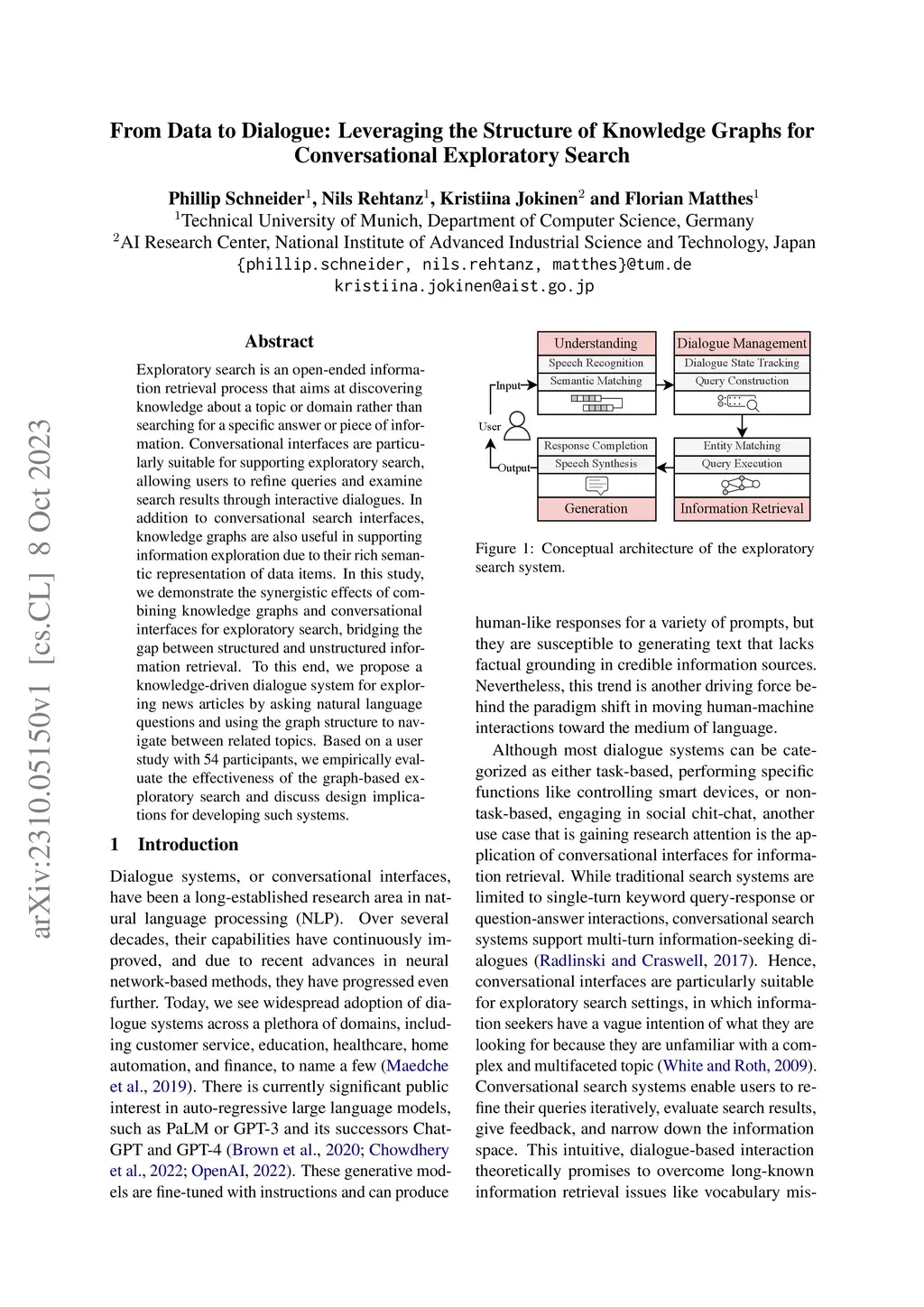 Exploratory search is an open-ended information retrieval process that aims at discovering knowledge about a topic or domain rather than searching for a specific answer or piece of information. Conversational interfaces are particularly suitable for supporting exploratory search, allowing users to refine queries and examine search results through interactive dialogues. In addition to conversational search interfaces, knowledge graphs are also useful in supporting information exploration due to their rich semantic representation of data items. In this study, we demonstrate the synergistic effects of combining knowledge graphs and conversational interfaces for exploratory search, bridging the gap between structured and unstructured information retrieval. To this end, we propose a knowledge-driven dialogue system for exploring news articles by asking natural language questions and using the graph structure to navigate between related topics. Based on a user study with 54 participants, we empirically evaluate the effectiveness of the graph-based exploratory search and discuss design implications for developing such systems.