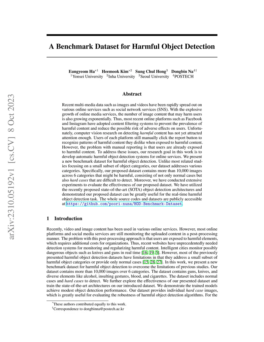 HOD: A Benchmark Dataset for Harmful Object Detection