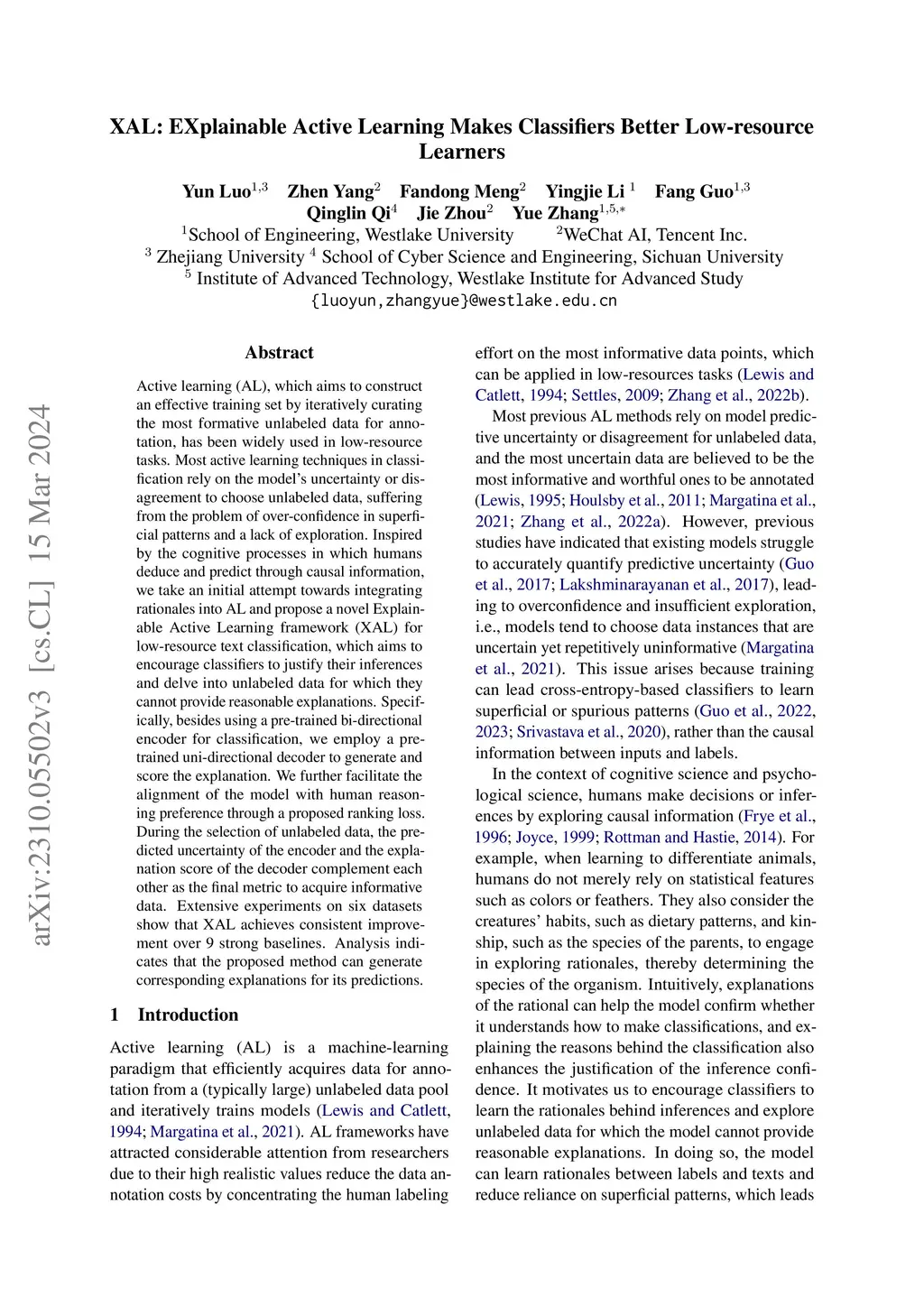 XAL: EXplainable Active Learning Makes Classifiers Better Low-resource