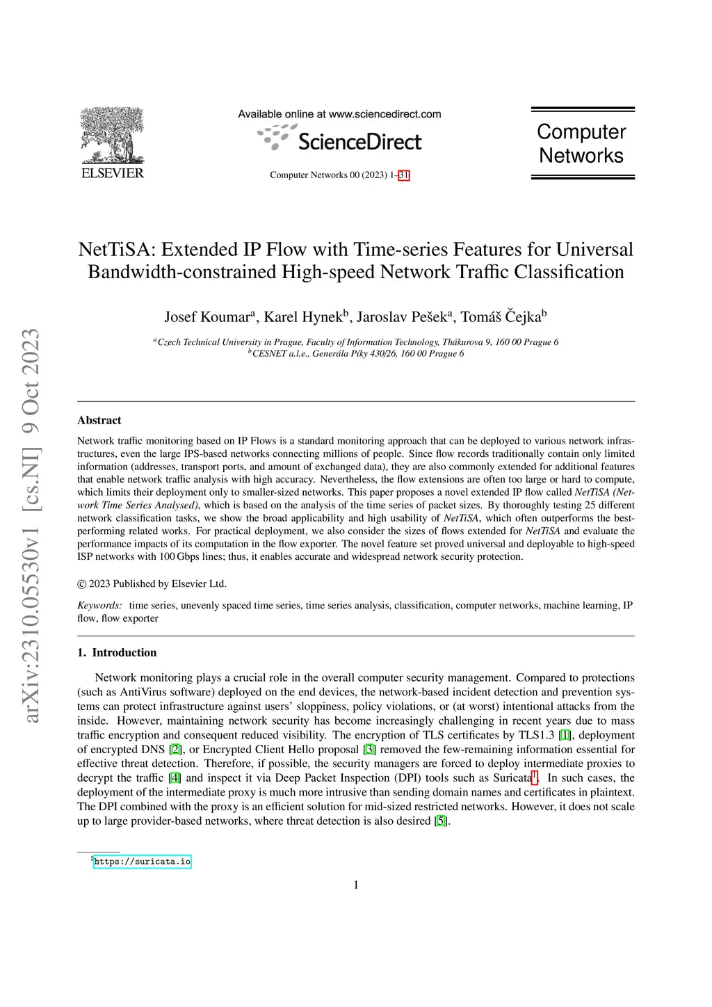 Network traffic monitoring based on IP Flows is a standard monitoring approach that can be deployed to various network infrastructures, even the large IPS-based networks connecting millions of people. Since flow records traditionally contain only limited information (addresses, transport ports, and amount of exchanged data), they are also commonly extended for additional features that enable network traffic analysis with high accuracy. Nevertheless, the flow extensions are often too large or hard to compute, which limits their deployment only to smaller-sized networks. This paper proposes a novel extended IP flow called NetTiSA (Network Time Series Analysed), which is based on the analysis of the time series of packet sizes. By thoroughly testing 25 different network classification tasks, we show the broad applicability and high usability of NetTiSA, which often outperforms the best-performing related works. For practical deployment, we also consider the sizes of flows extended for NetTiSA and evaluate the performance impacts of its computation in the flow exporter. The novel feature set proved universal and deployable to high-speed ISP networks with 100\,Gbps lines; thus, it enables accurate and widespread network security protection.
