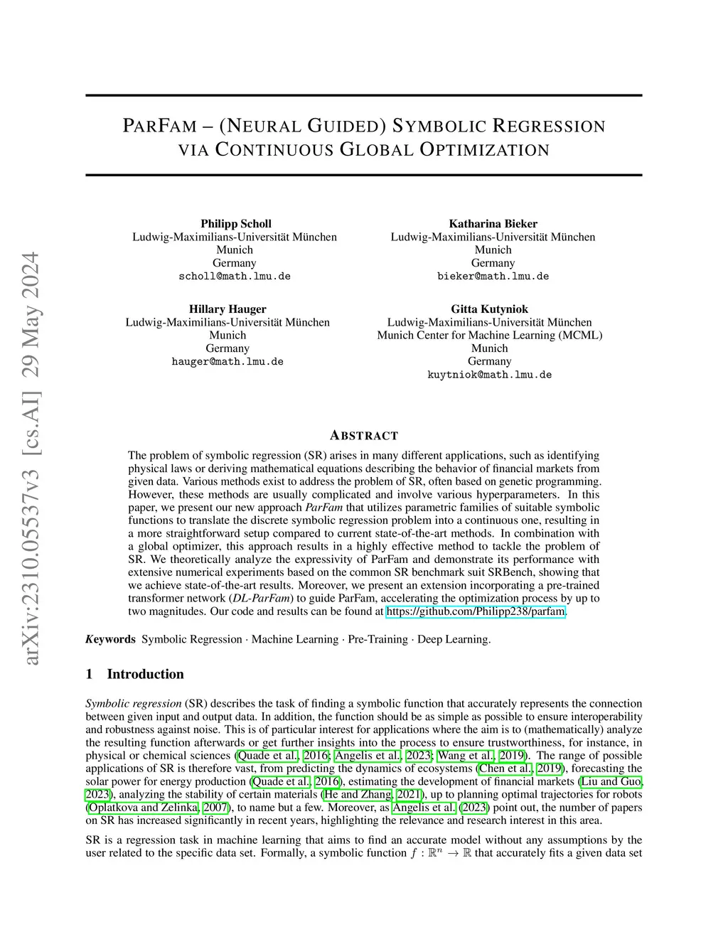 ParFam -- (Neural Guided) Symbolic Regression Based on Continuous Global Optimization