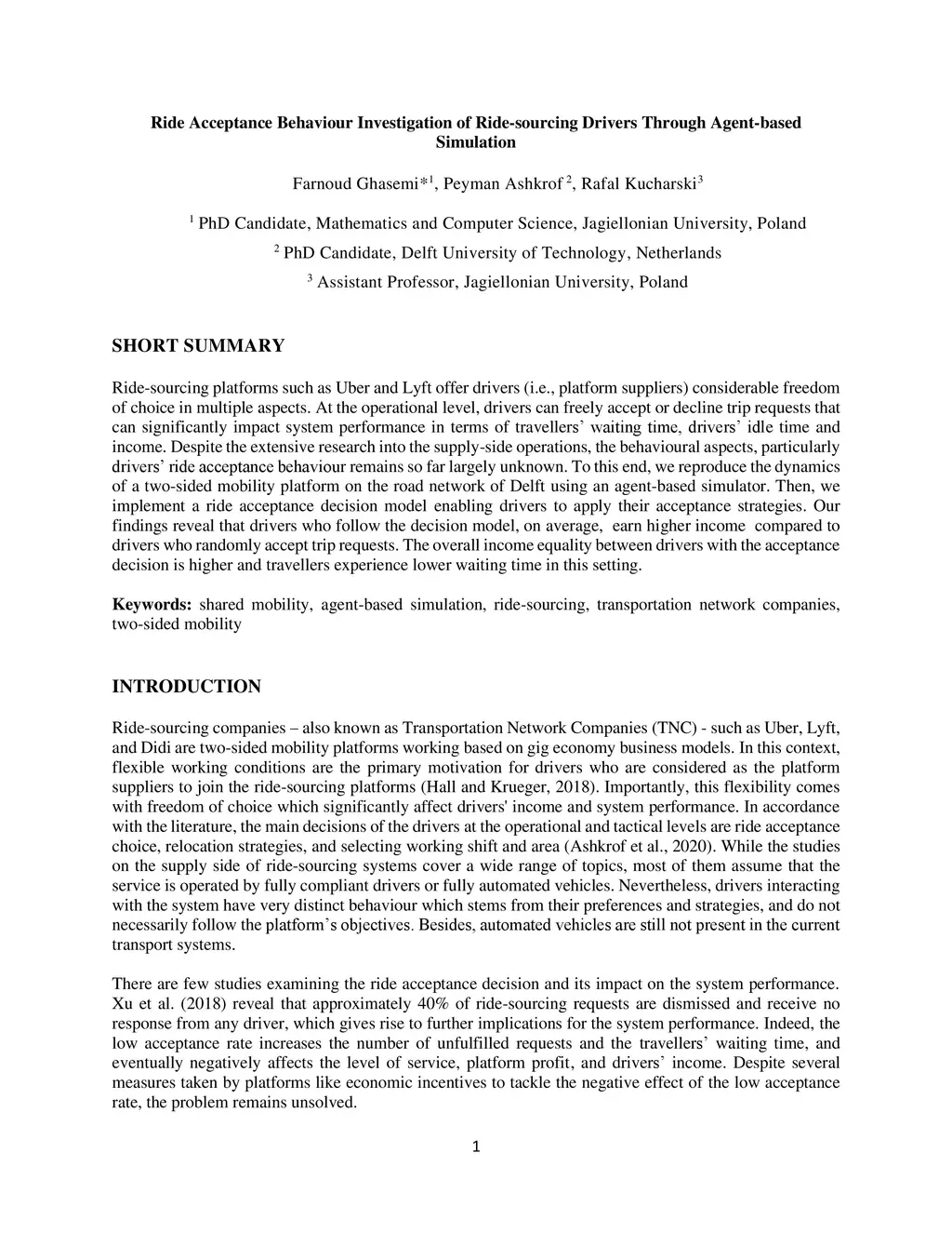 Ride Acceptance Behaviour Investigation of Ride-sourcing Drivers Through