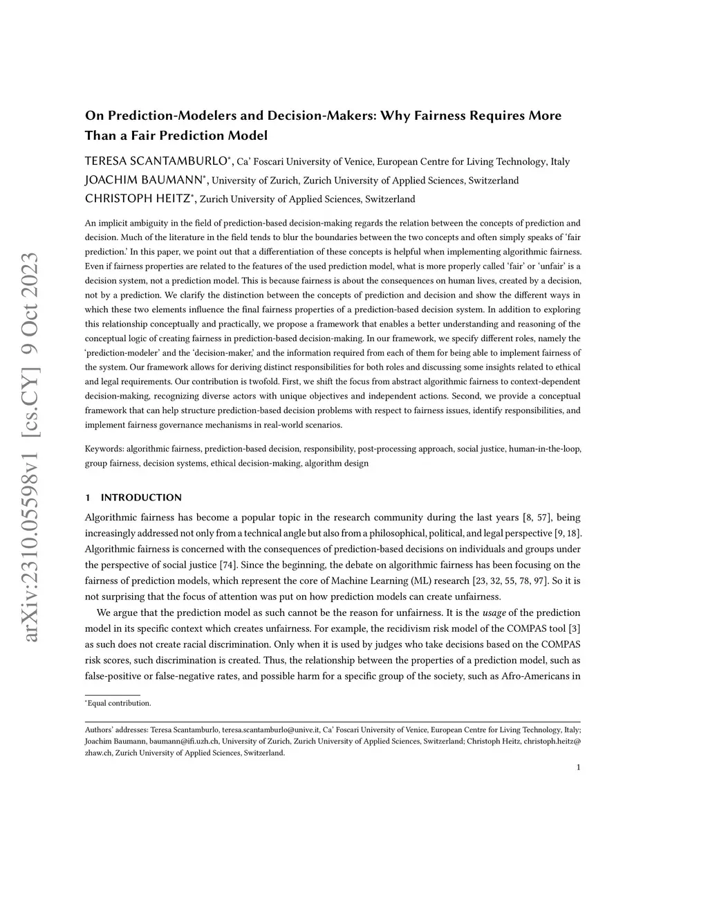 On Prediction-Modelers and Decision-Makers: Why Fairness Requires More