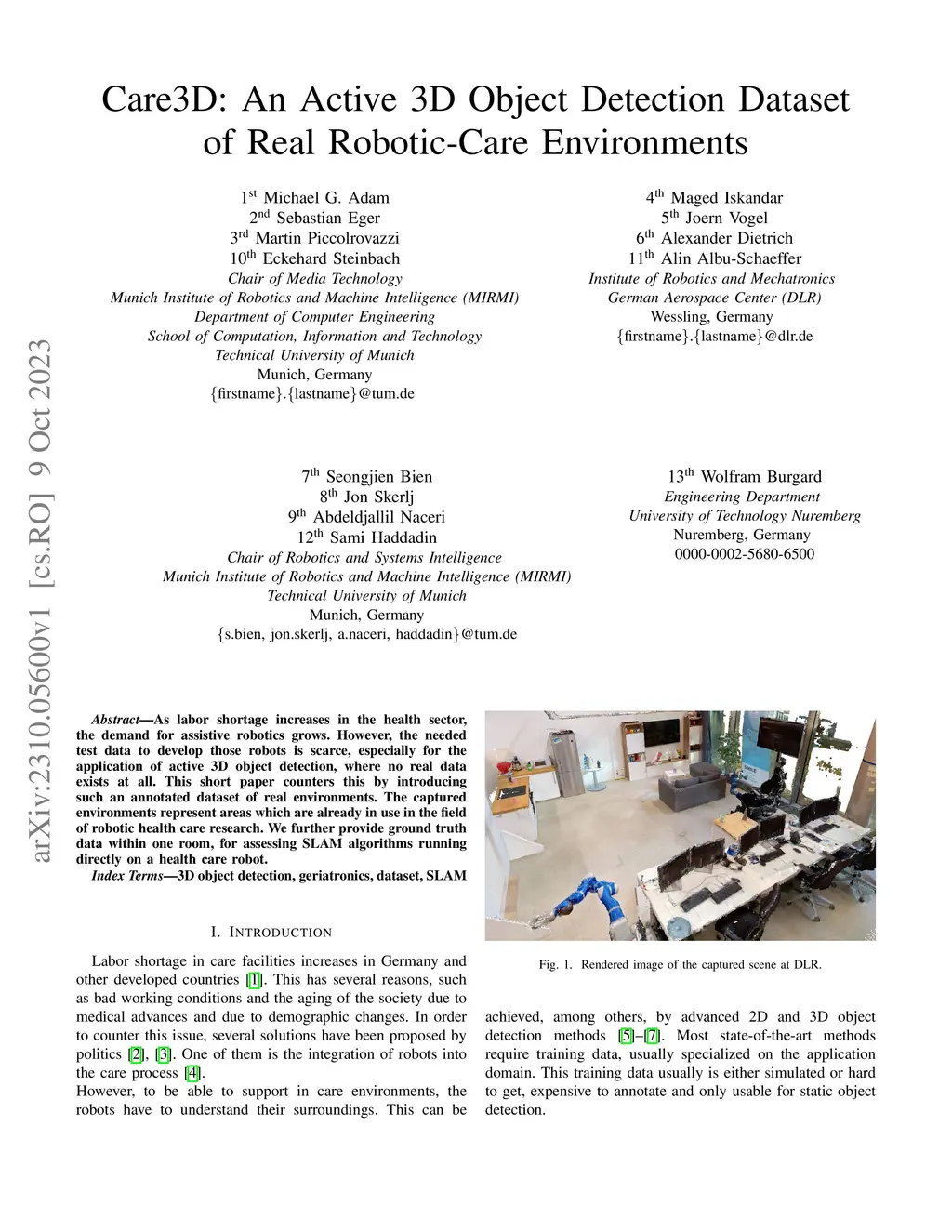 Care3D: An Active 3D Object Detection Dataset of Real Robotic-Care