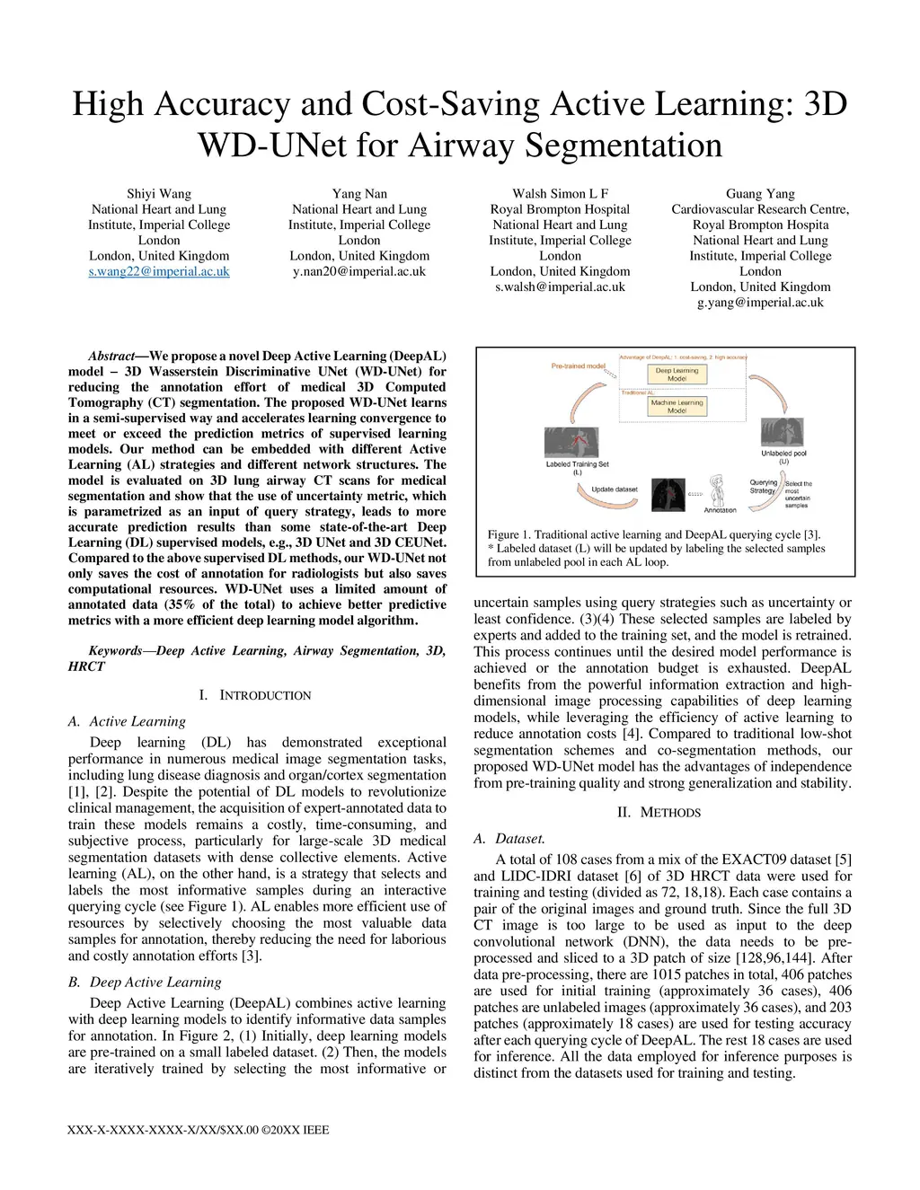 High Accuracy and Cost-Saving Active Learning 3D WD-UNet for Airway